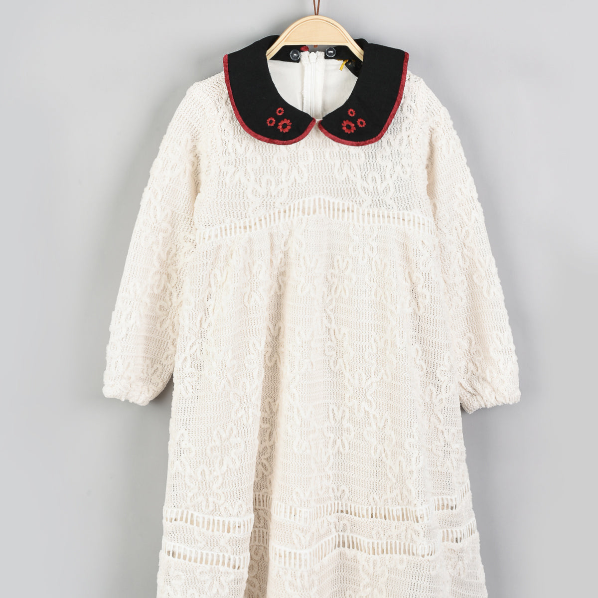 שמלת קפלים בשילוב קרדיגן סריג - שמנת