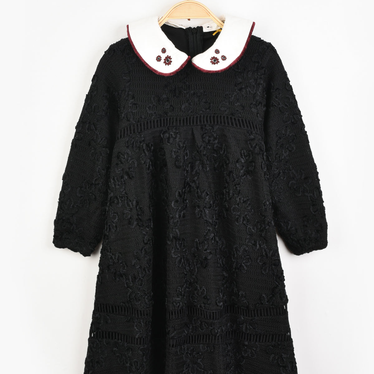 שמלת תיקתקים עם צווארון סרוג - שחור