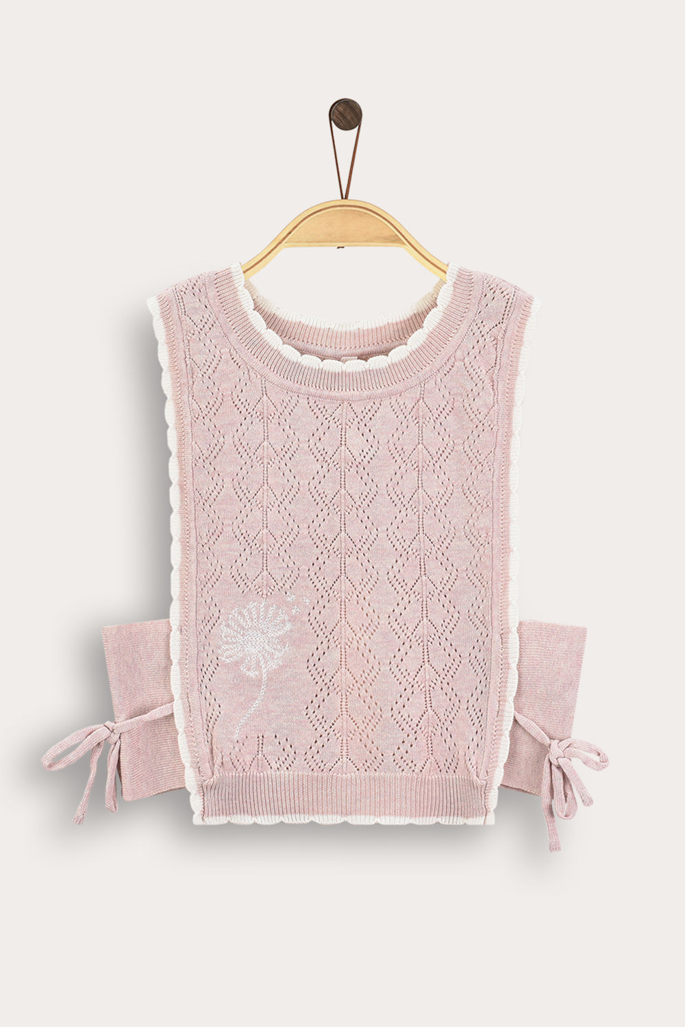 Floral knit cardigan with tie - pink