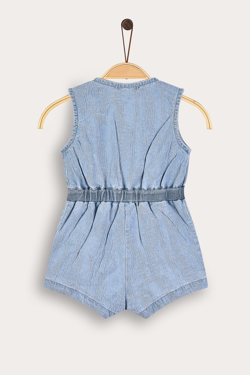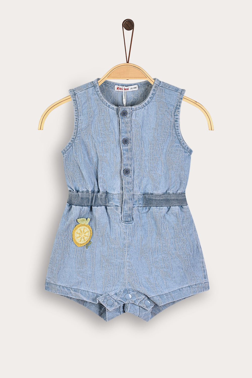 Sweet and comfortable overalls for baby, made of flexible and high-quality denim fabric - for maximum comfort throughout the day. A meticulous and flattering cut that includes a front button, gathers at the waist and a round neckline. Designed with a summery patch on the side for a modern and fashionable appearance, a perfect choice for trips with the little ones.