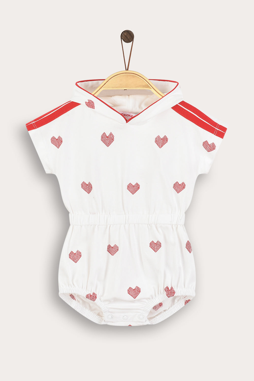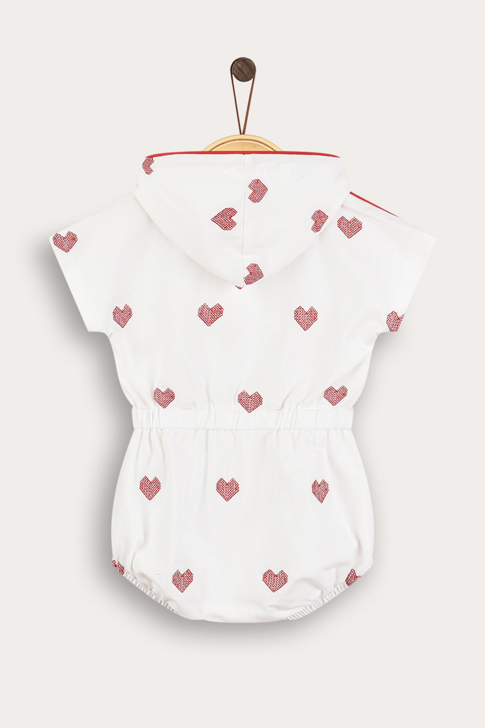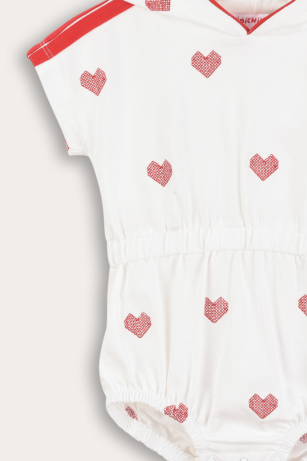 Baby overalls in a sporty style, with a delicate and graceful heart print. A flattering cut with gathers at the waist for maximum fit. A hooded cap and stripes designed on the shoulders - complete an urban and modern look. Made of high-quality, breathable cotton blend fabric, which provides comfort throughout the day.