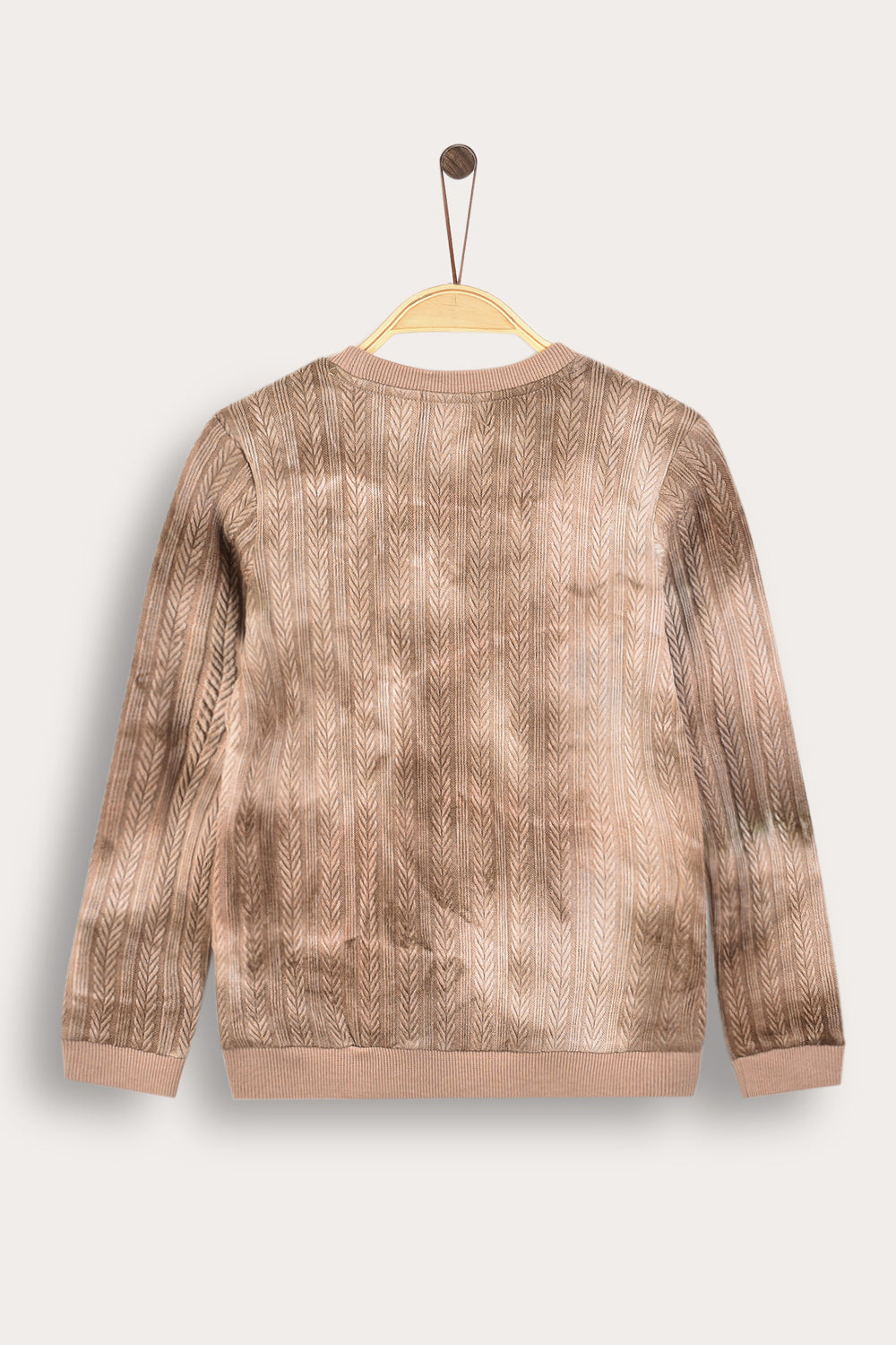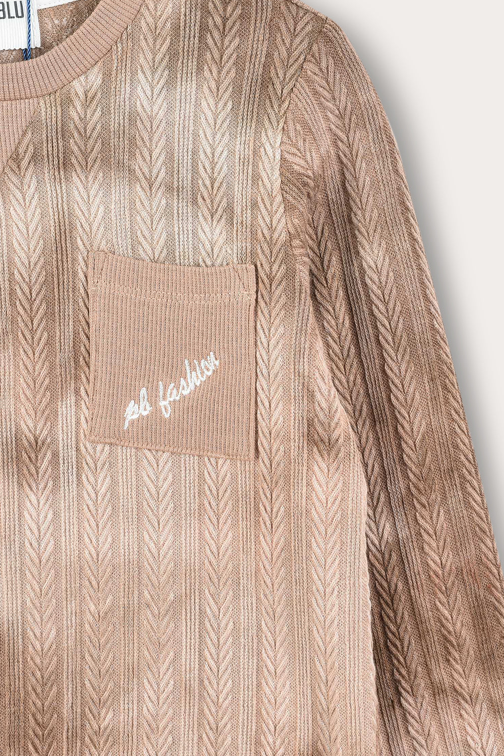 A fashionable boys' shirt in a tie-dye design with a unique look. Made of a flexible and comfortable knit fabric with a delicate braid pattern. The cut includes long sleeves, a round neckline, a neat ribbed hem for maximum fit and a side pocket with embroidery - completing a practical and meticulous appearance. Suitable for everyday use and family outings.