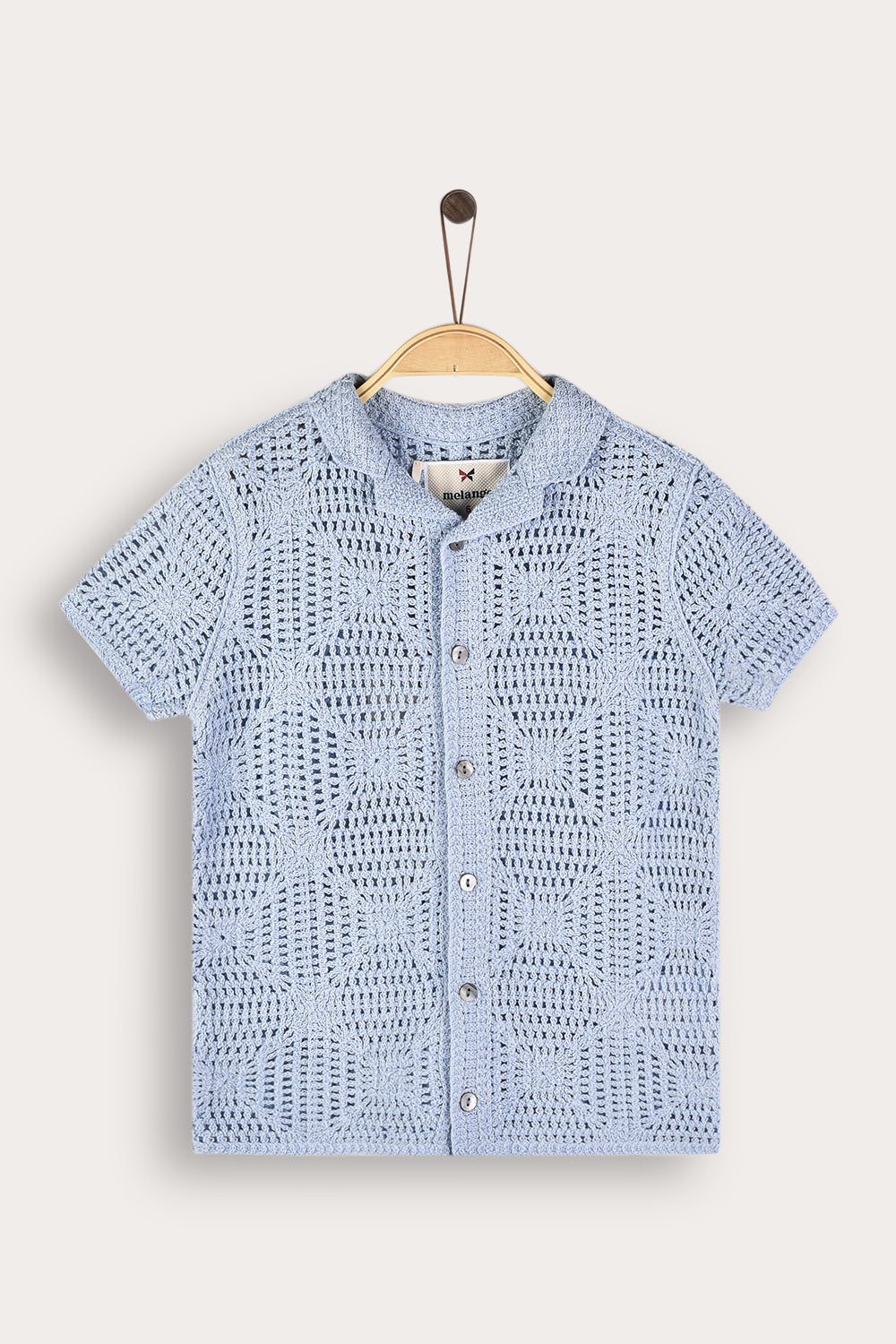 Crocheted knit button-down shirt - light blue