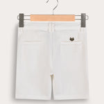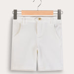 מכנסי ברמודה לבנים, עשויים מבד אריג עמיד ואיכותי - לנוחות מירבית לאורך כל היום. הגזרה כוללת כיסים שימושיים, סגירת כפתור קלאסית ומקום לחגורה - להשלמת הופעה מסודרת ונאה. אידיאליים לשבתות, חגים ואירועים משפחתיים.