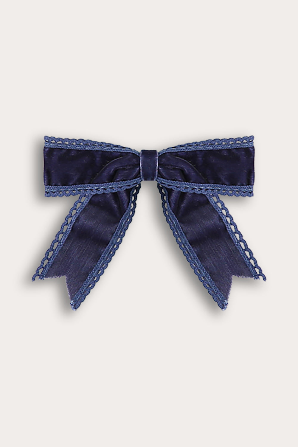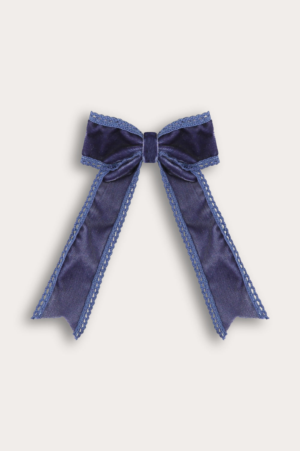 Long velvet bow tie with crochet trim - blue