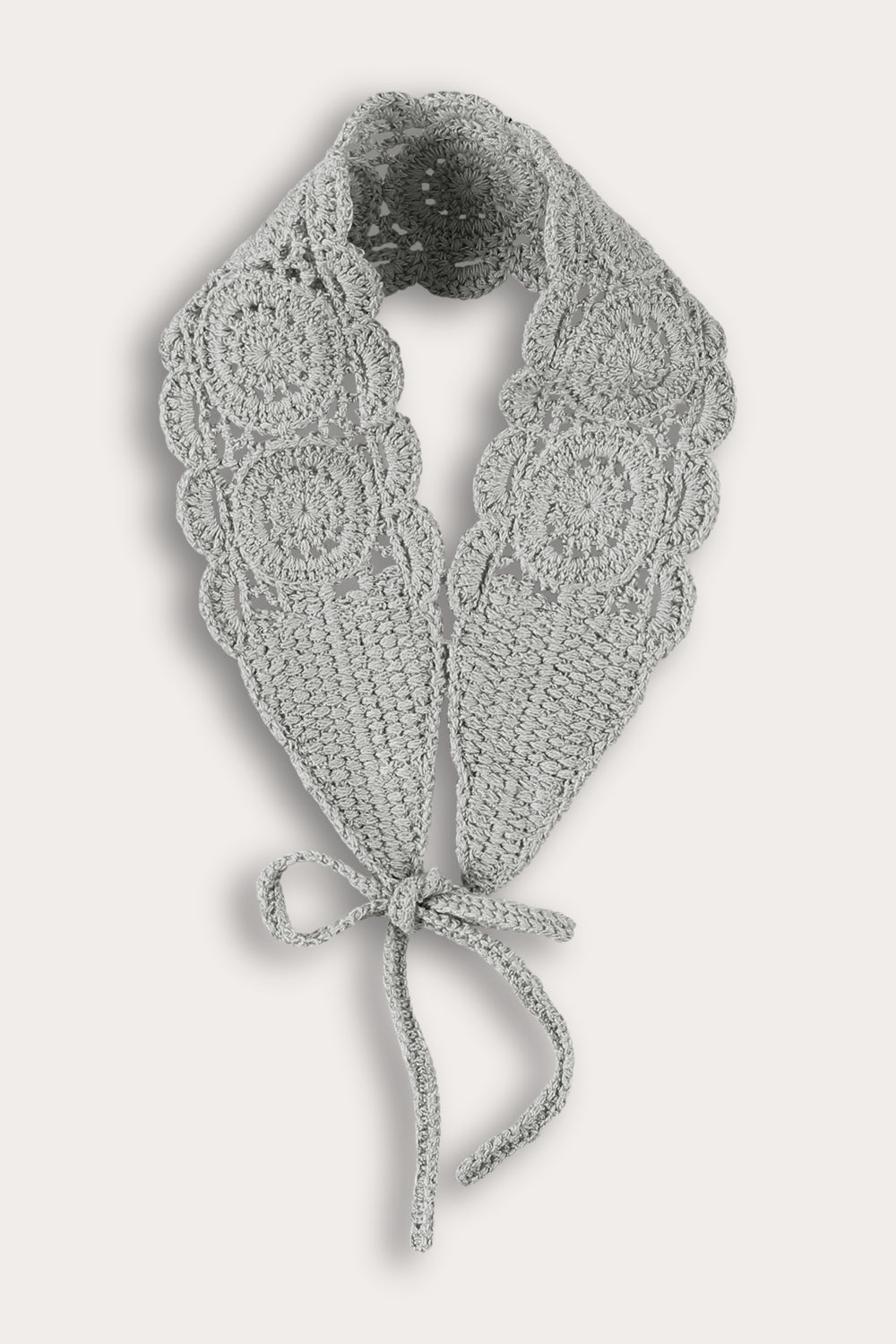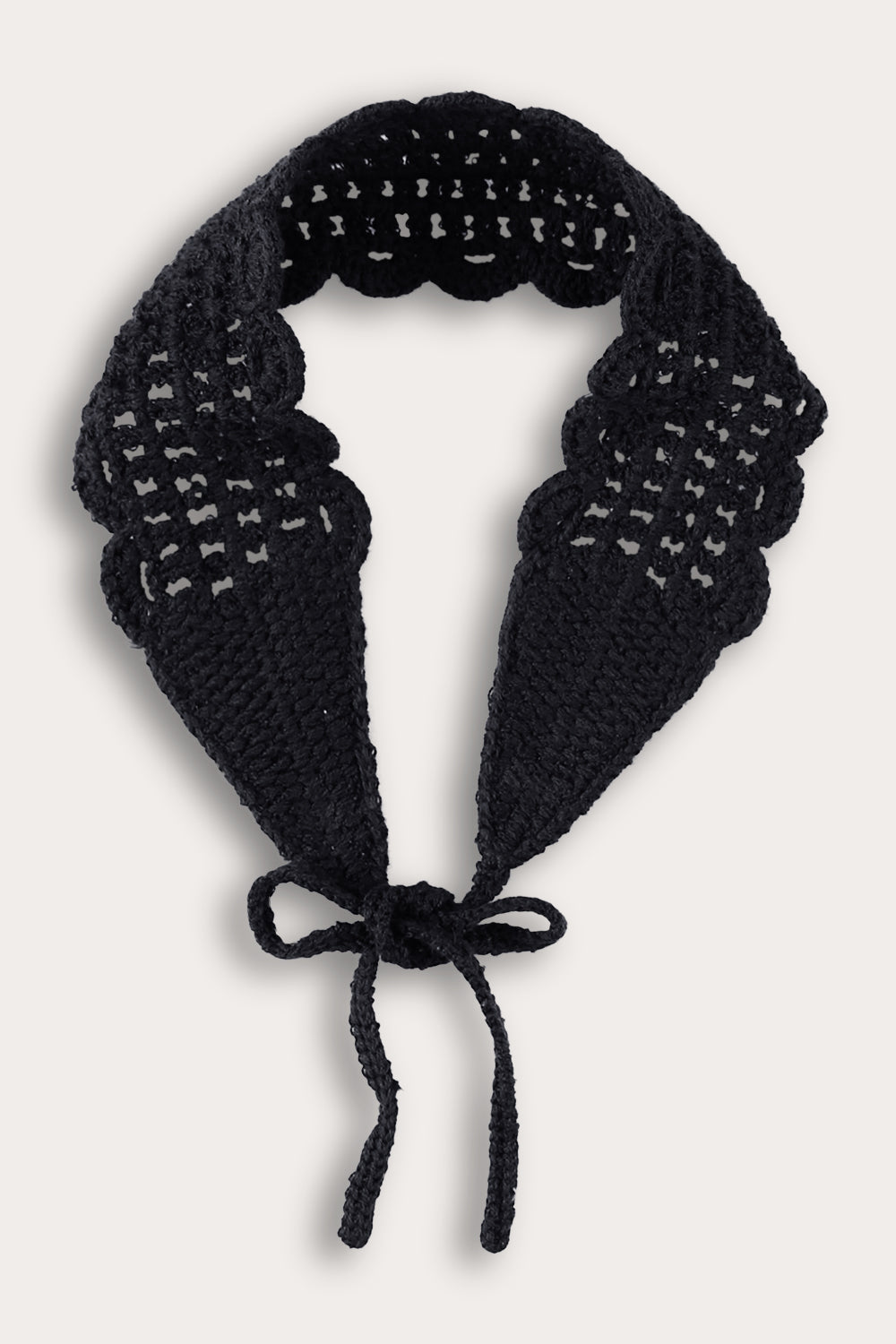 Long velvet bow tie with crochet trim - black