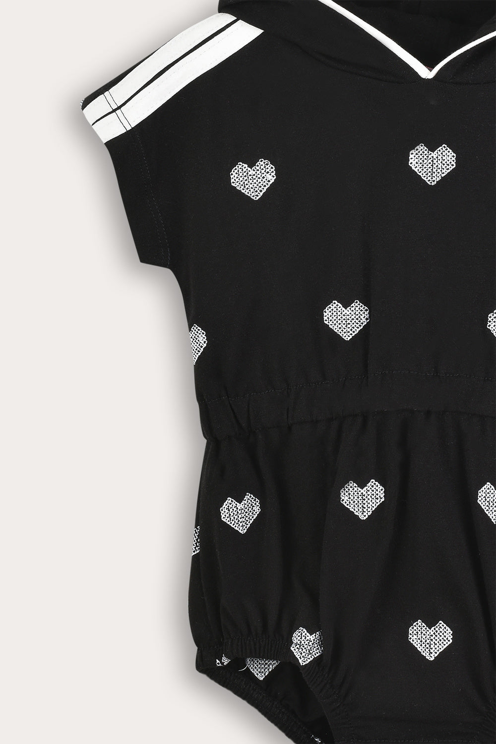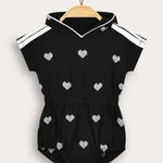 Baby overalls in a sporty style, with a delicate and graceful heart print. A flattering cut with gathers at the waist for maximum fit. A hooded cap and stripes designed on the shoulders - complete an urban and modern look. Made of high-quality, breathable cotton blend fabric, which provides comfort throughout the day.