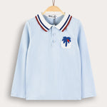 חולצה אופנתית לבנים, עשויה מבד תערובת כותנה איכותי ונושם - לנוחות מירבית לאורך כל היום. הגזרה כוללת שרוולים ארוכים וצווארון ריב פסים מעוצב עם כפתרה קדמית - ללבישה קלה ומראה מסודר. עיטור דקל סריג קרושה, משלים הופעה ייחודית וחיננית - המתאימה לשימוש יום יומי וליציאות משפחתיות.