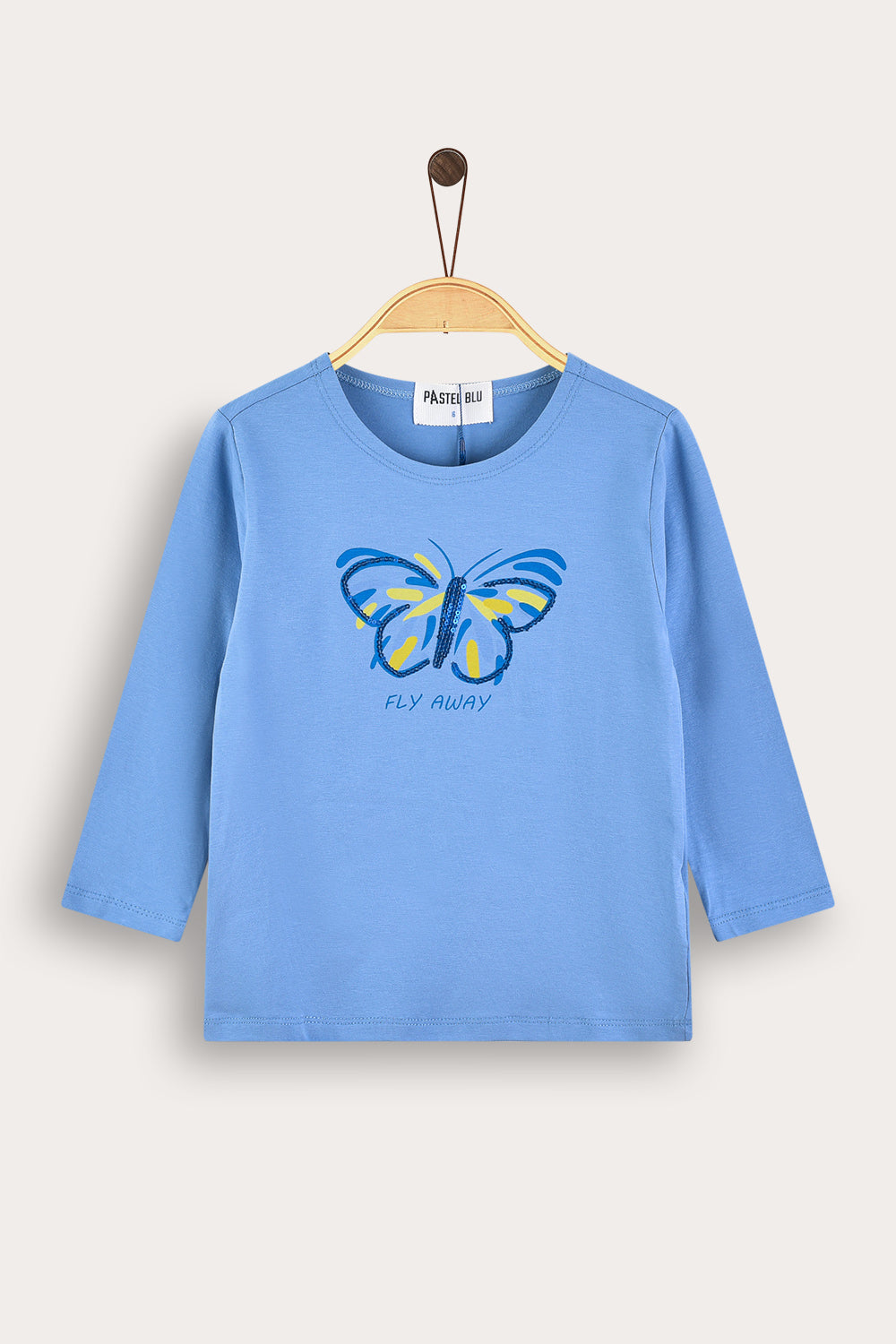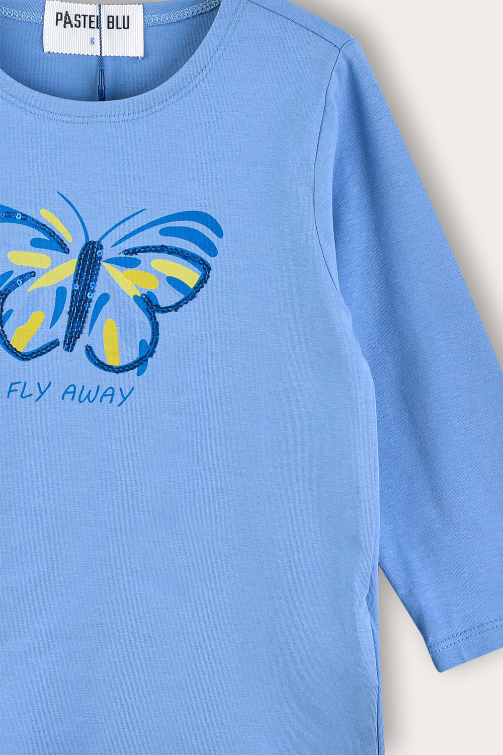 חולצת ריב נוחה לבנות עם הדפס פרפר.