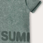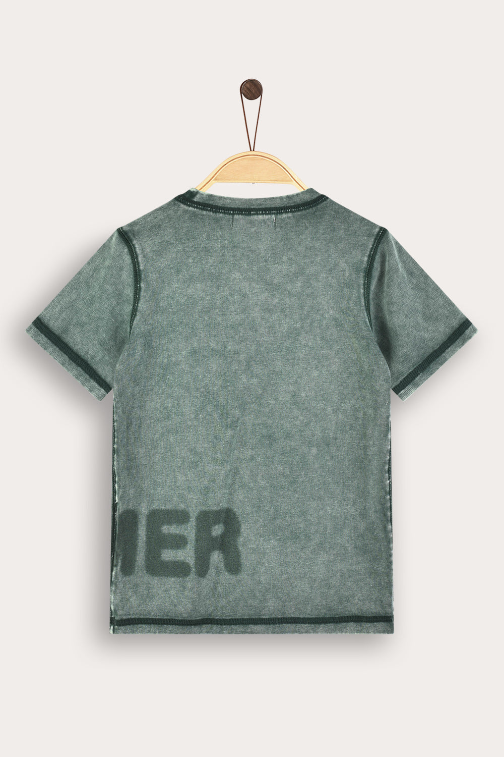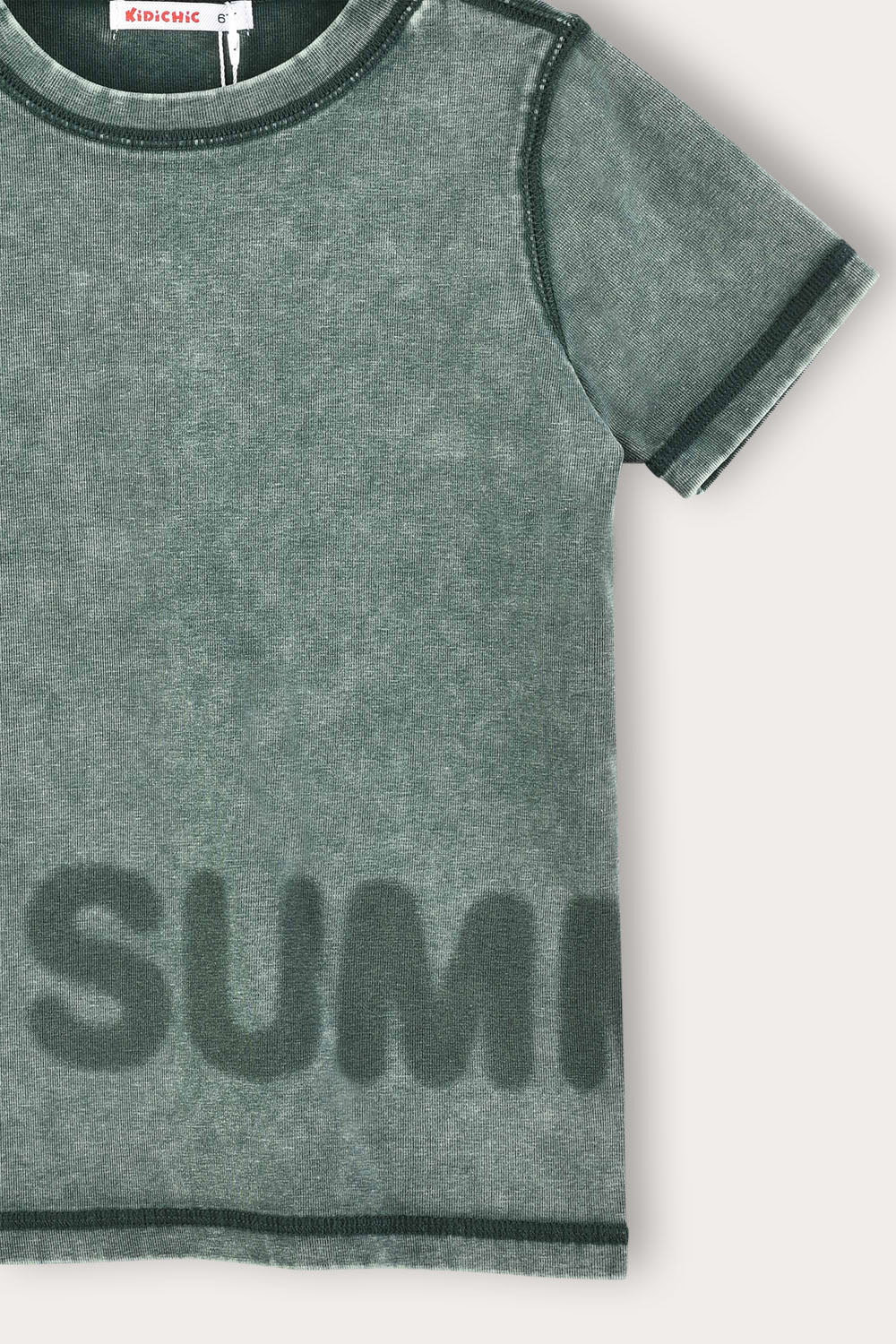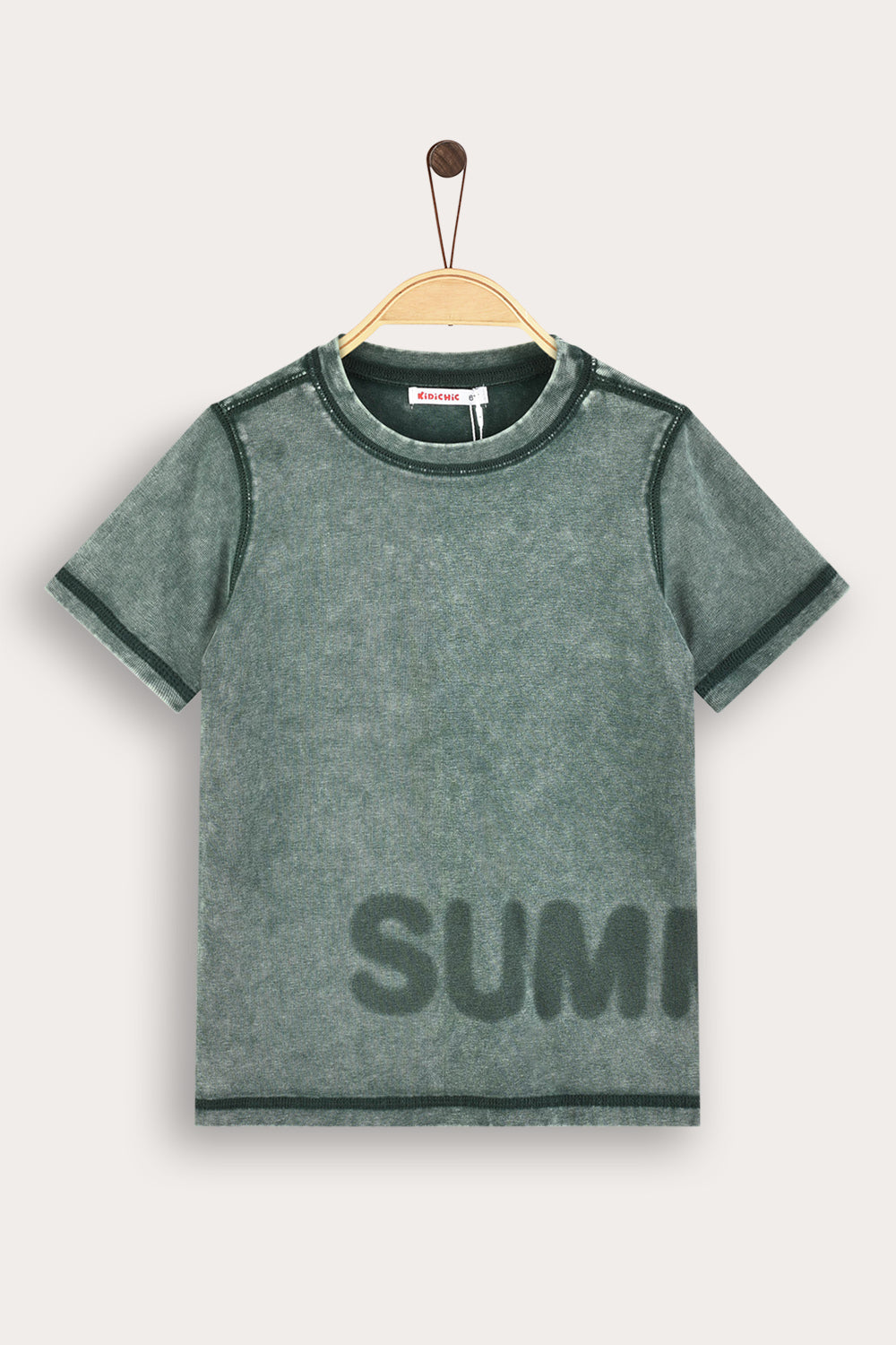 חולצת טי שירט אופנתית לתינוק, עשויה מבד תערובת כותנה איכותי ונושם - לנוחות מירבית לאורך כל היום. הגזרה כוללת פתח צוואר עגול ושרוולים קצרים. מעוצבת עם תפרים מודגשים, צביעת וואש ייחודית והדפס אותיות - המשלימים הופעה עדכנית וצעירה, אידיאלית לשימוש יום יומי ולטיולים עם הקטנטנים.