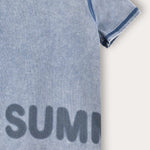 חולצת טי שירט אופנתית לתינוק, עשויה מבד תערובת כותנה איכותי ונושם - לנוחות מירבית לאורך כל היום. הגזרה כוללת פתח צוואר עגול ושרוולים קצרים. מעוצבת עם תפרים מודגשים, צביעת וואש ייחודית והדפס אותיות - המשלימים הופעה עדכנית וצעירה, אידיאלית לשימוש יום יומי ולטיולים עם הקטנטנים.