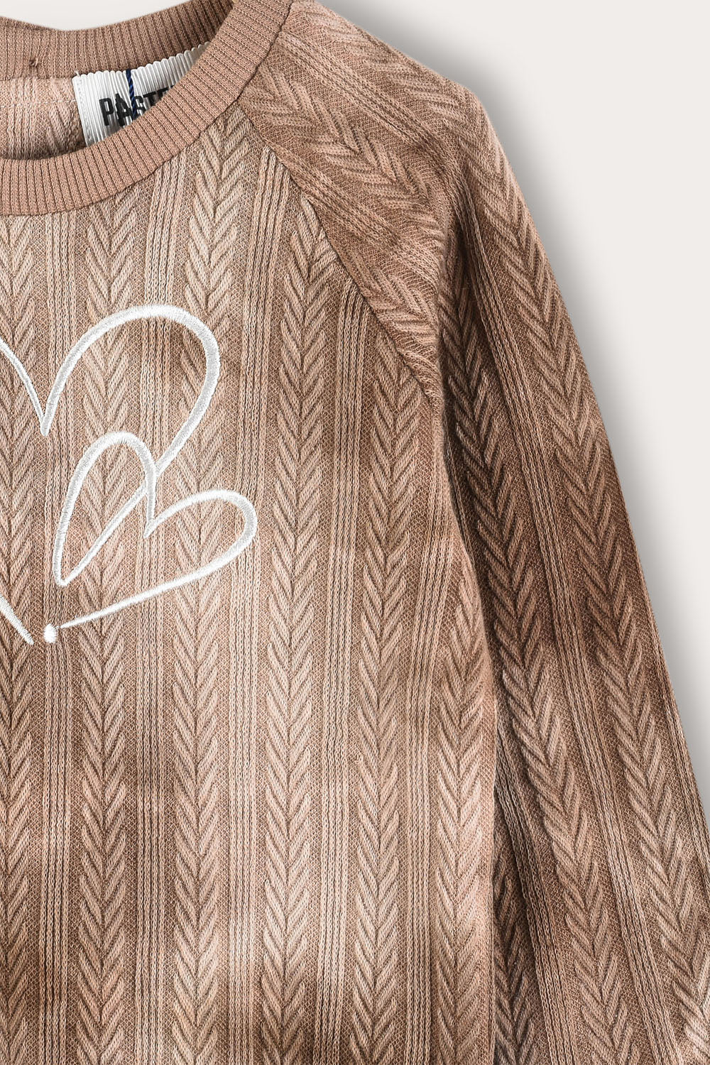 Heart Embroidery Tie Dye Set - Beige