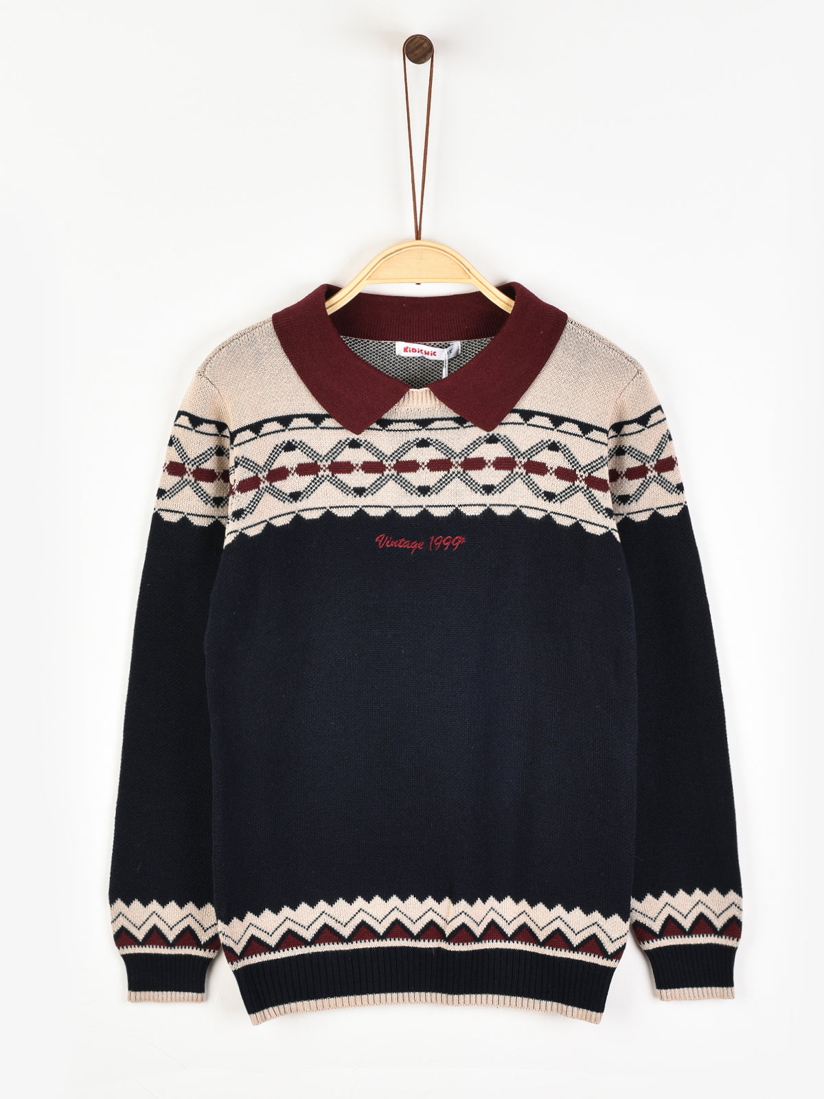 Knitted sweater with collar - Navy