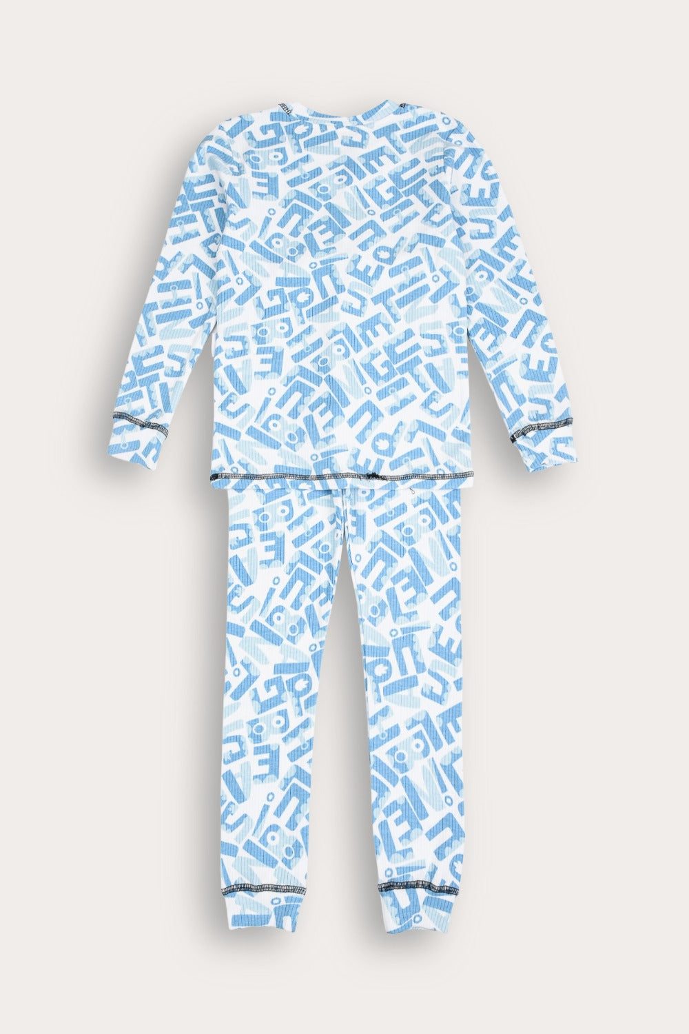 סט פיג'מה עם שני חלקים, בעיצוב יוניסקס שימושי המתאים לבנים ולבנות כאחד. עשוי מבד ריב גמיש ונעים - לנוחות מירבית גם בשעות השינה. החלק העליון חולצה עם פתח צוואר עגול ושרוולים ארוכים. החלק התחתון מכנסיים ארוכים בעיצוב תואם. הדפס במוטיב אותיות במראה צעיר ועדכני, מושלם ללילות מתוקים עם חלומות טובים.