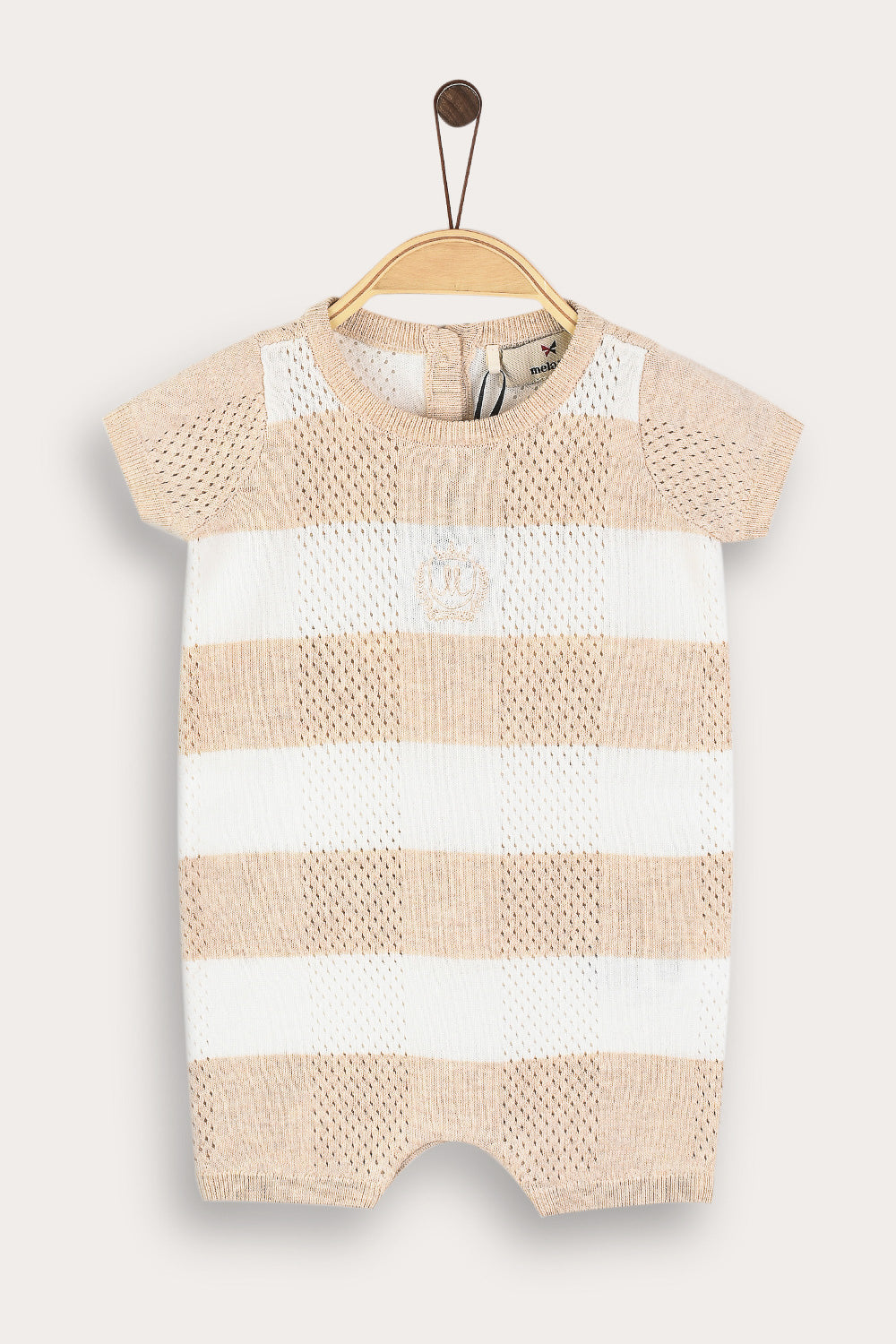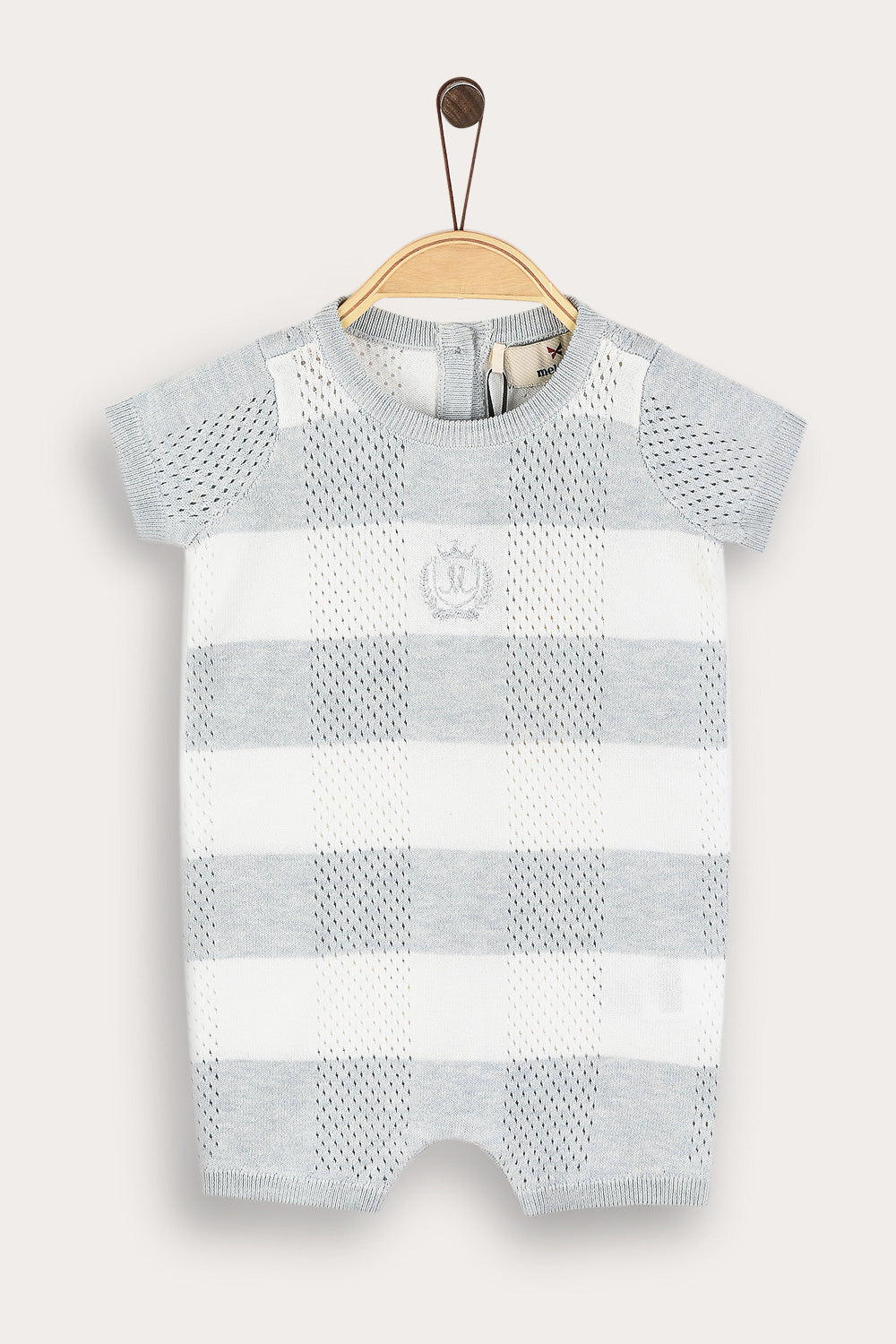 Checkered overalls with knit combination - cream