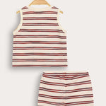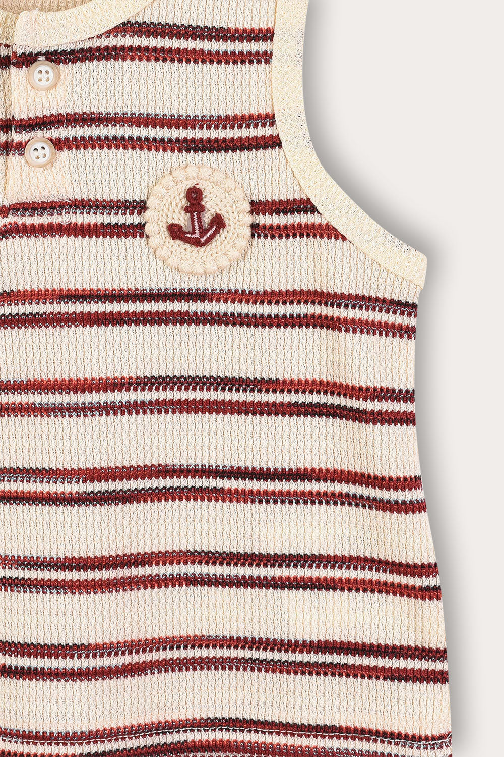 The top is a striped tank top made of soft waffle fabric, with two front buttons and a sweet symbol on the side.
