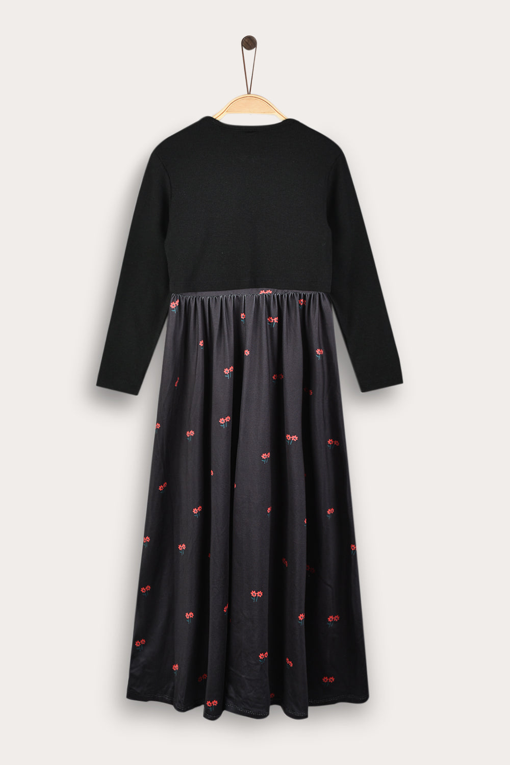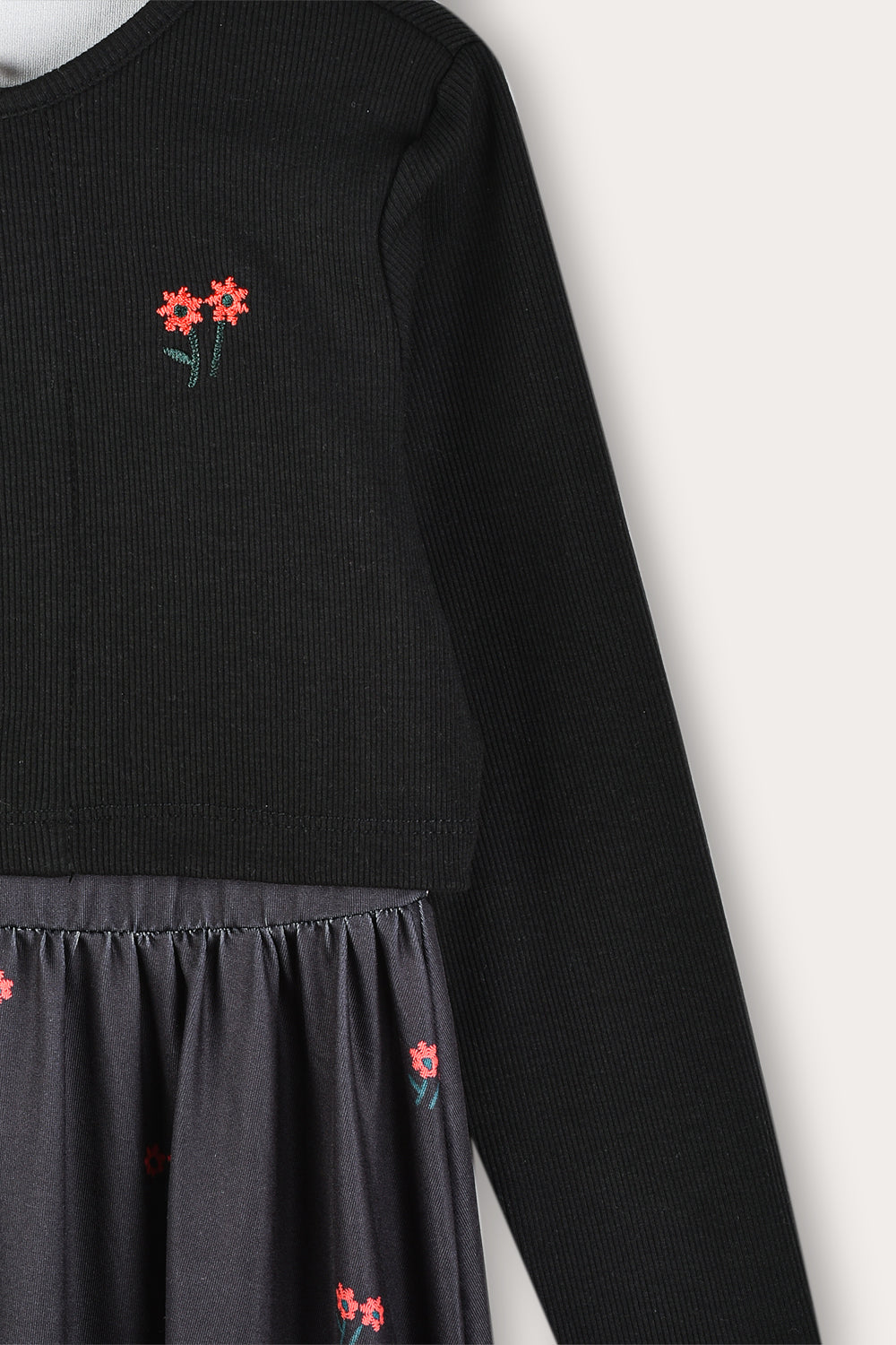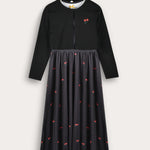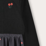 Floral robe combined with cardigan - black