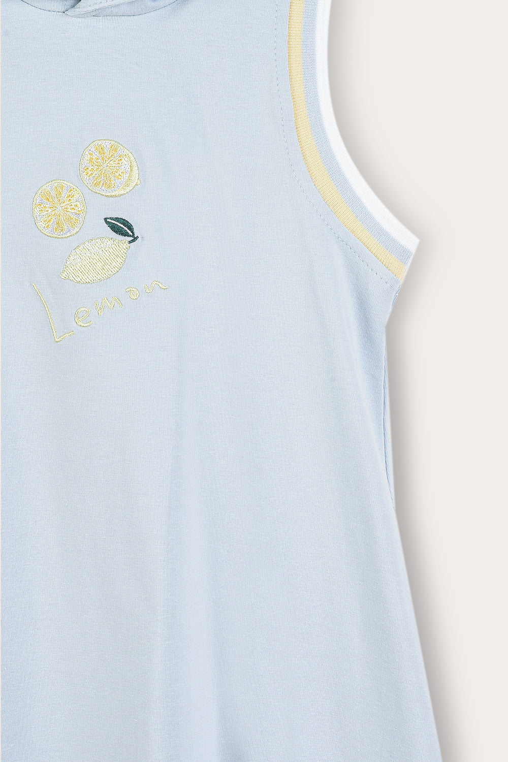 A sweet summery sundress for girls, made of high-quality, breathable rib fabric - for maximum comfort throughout the day. The design includes a hood, a meticulous rib trim, and front embroidery that adds charm and color. Suitable for everyday activities and family outings, with a graceful and neat look that combines practicality and comfort.