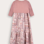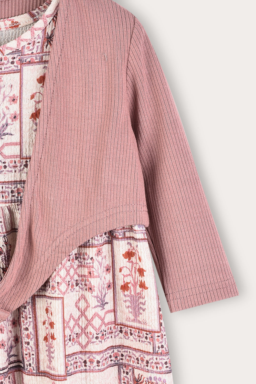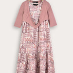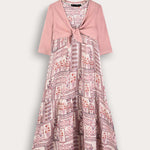 Ethnic print robe with cardigan - powder