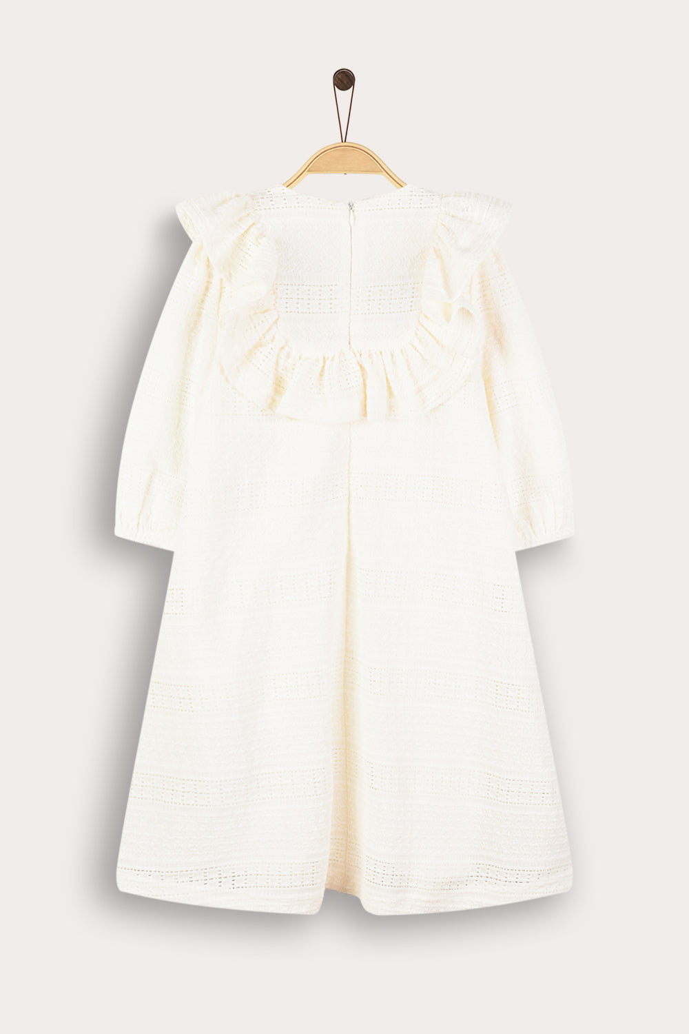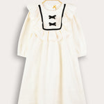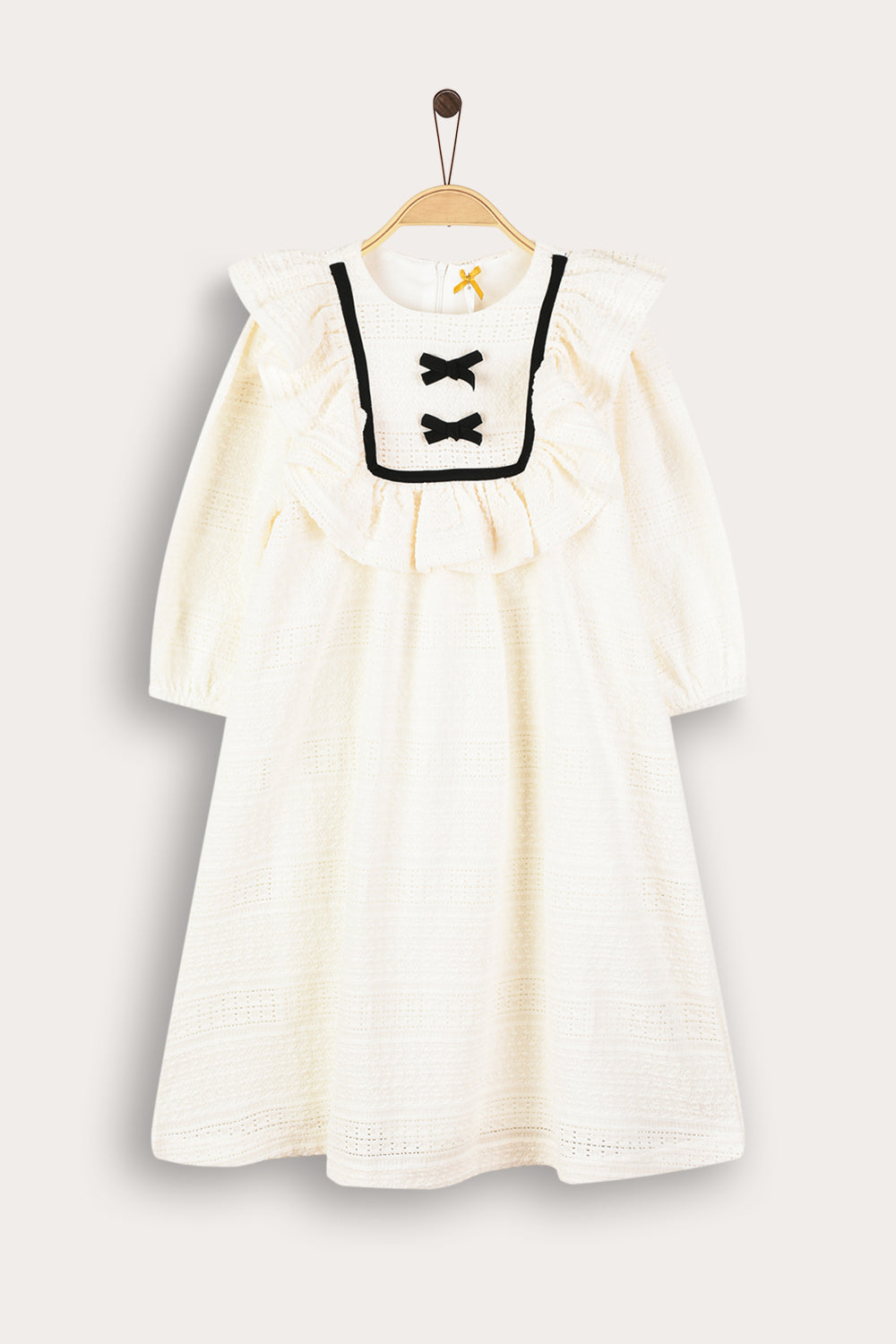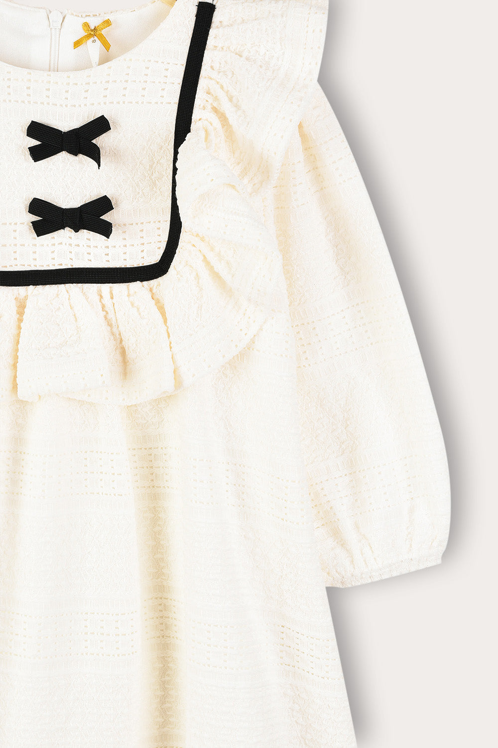 Designed with a wide muslin collar and two delicate ribbons - which complete a unique and impressive appearance. Puffed sleeves with gathered ends, and a zipper closure at the back of the garment that allows for easy and comfortable wearing.