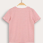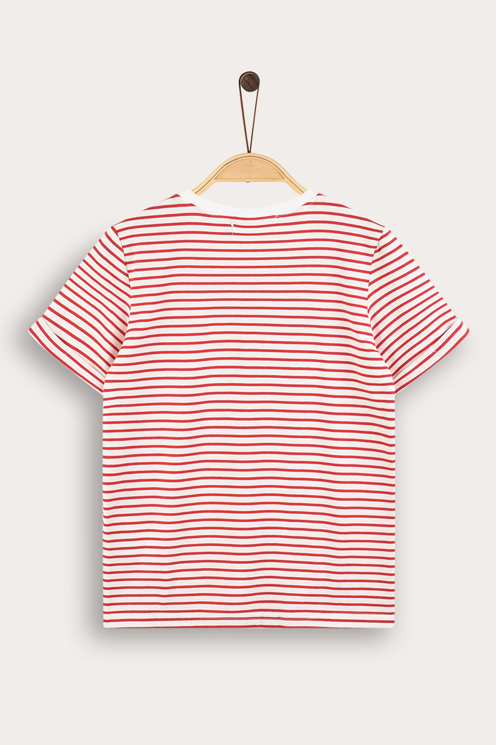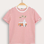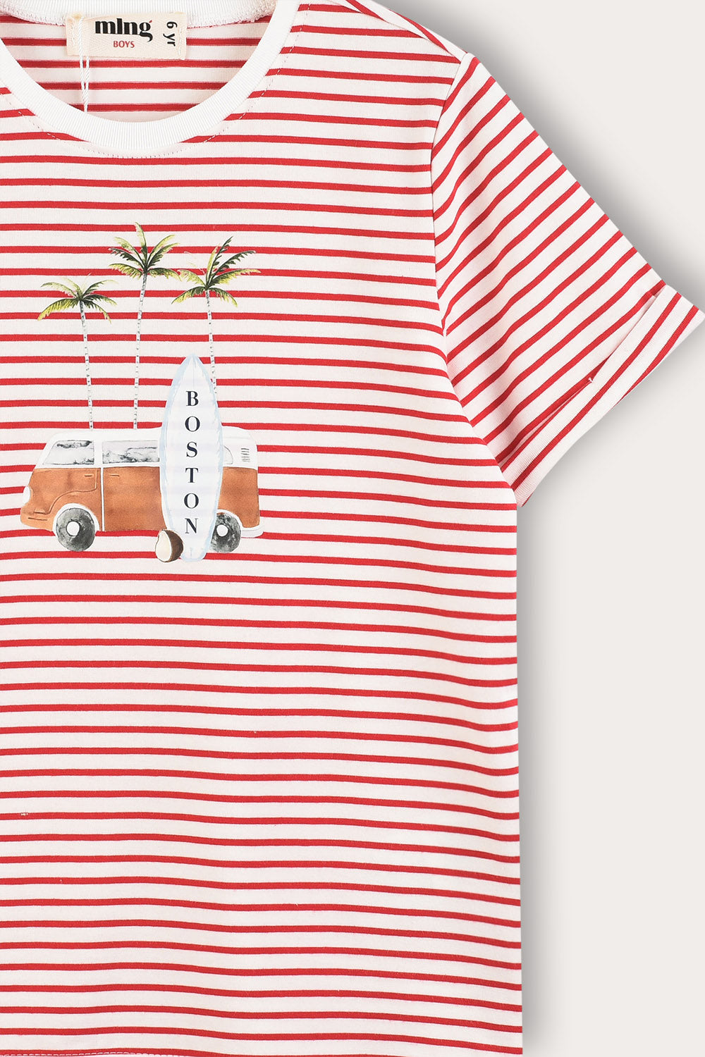 חולצת פסים לבנים, עם שרוולים קצרים והדפס קייצי.