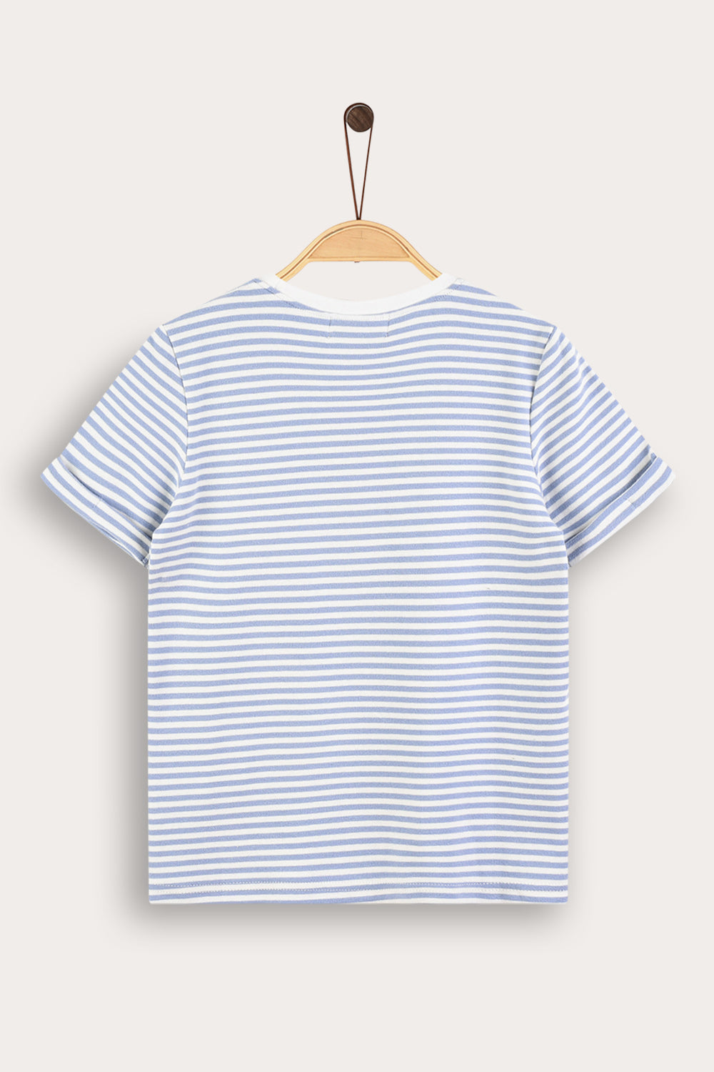 חולצת פסים לבנים, עם שרוולים קצרים והדפס קייצי.