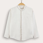 חולצה מכופתרת לבנים, בעיצוב אלגנטי ומעודן המתאים במיוחד לשבת. הגזרה כוללת צווארון סיני ושרוולים ארוכים, במראה מרשים ומסודר. גוון שמנת קלאסי, וגימור פס אלגנטי - משלימים הופעה נקייה ומוקפדת. בחירה מושלמת לשילוב בין סגנון חגיגי לנוחות יומיומית.