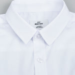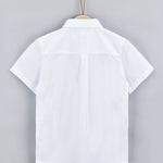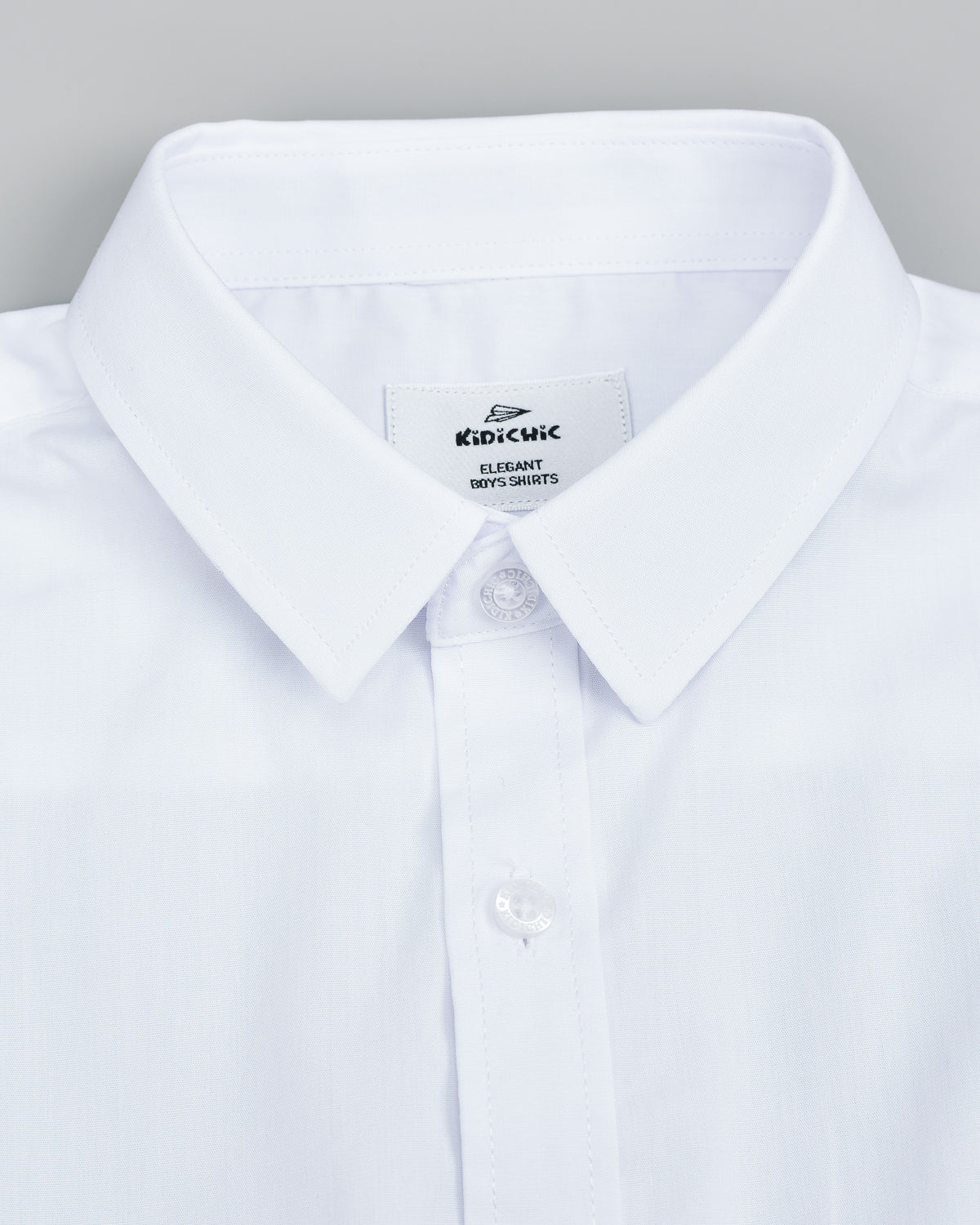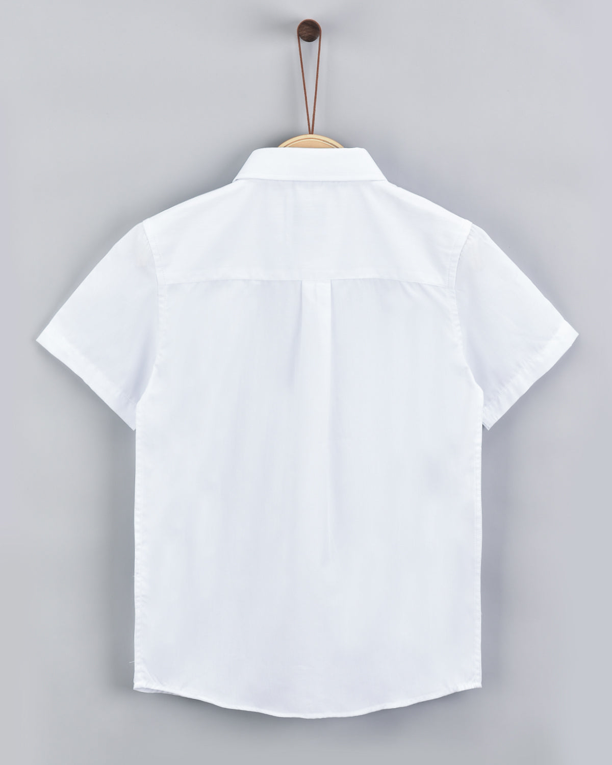 חולצת בנים לבנה מכופתרת, עם שרוולים קצרים וצווארון מסודר.עשויה מבד אריג פופלין בדגם רב עונתי.