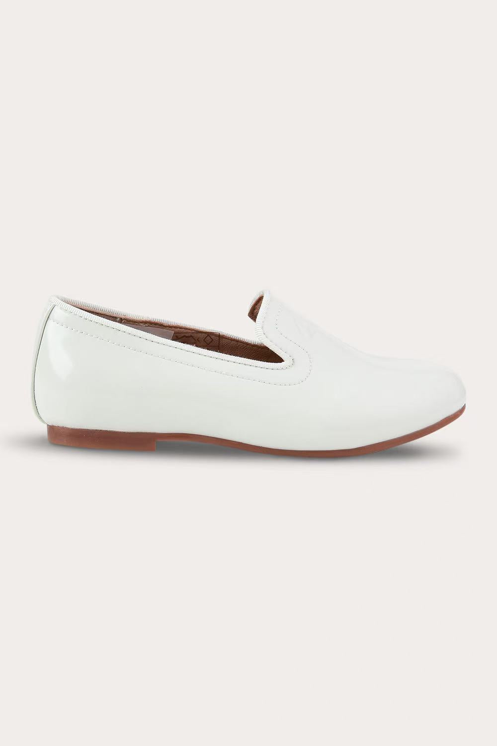 נעלי סירה קלאסיות לבנים, עם סוליה שטוחה ונוחה.