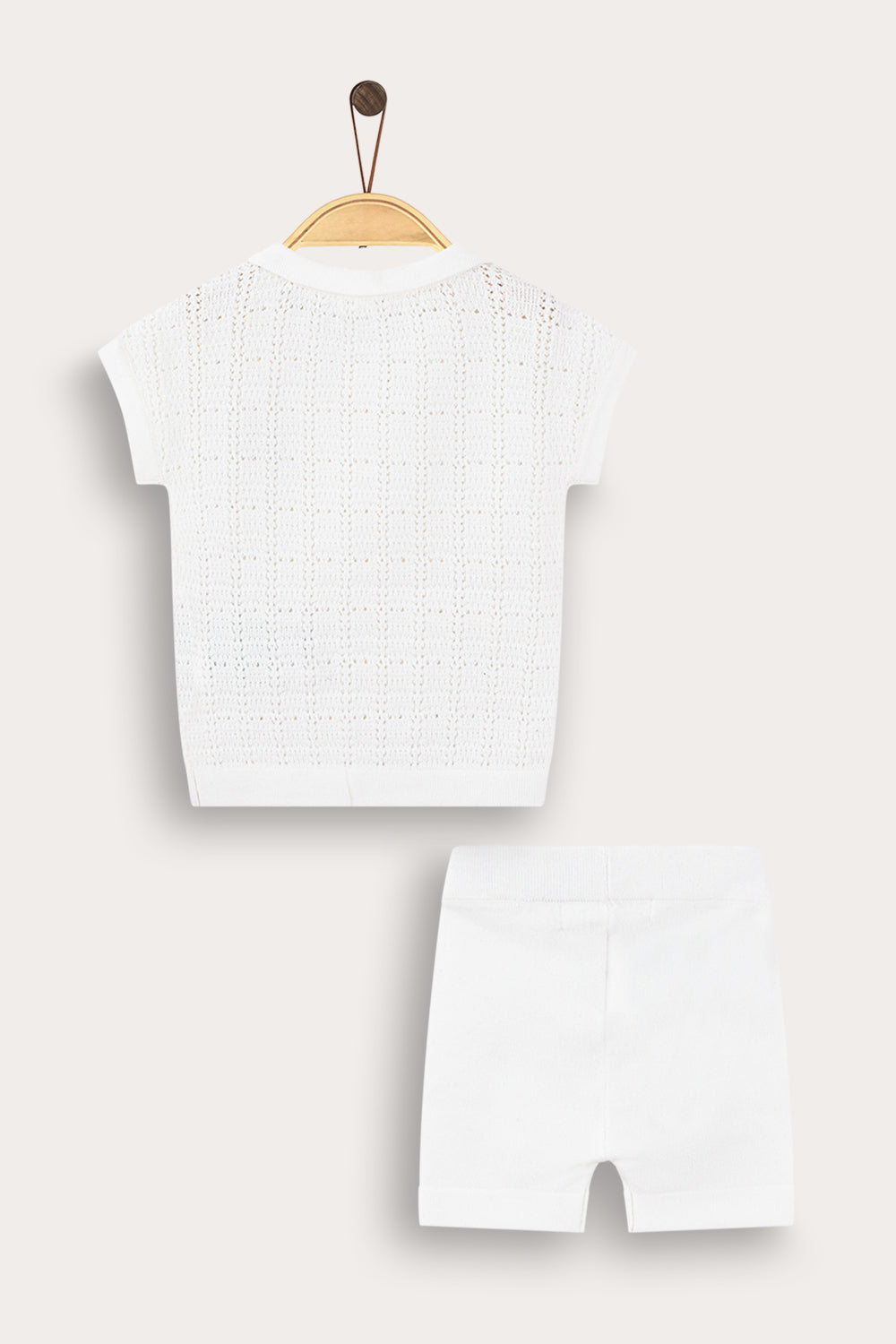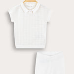 סט שבת חגיגי לתינוק, הכולל שני חלקים. עשוי מבד סריג נעים וגמיש - לנוחות מירבית לאורך כל היום.