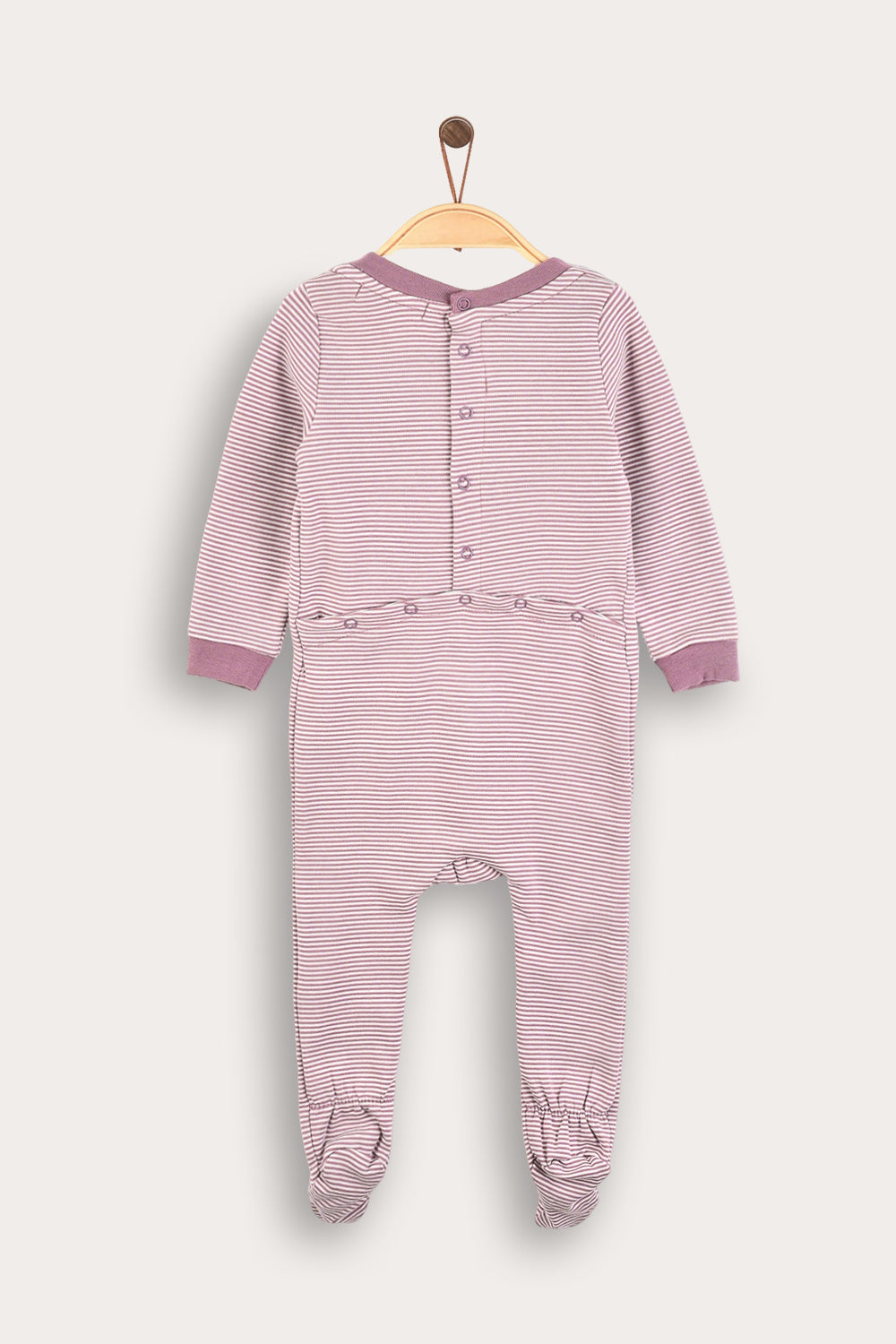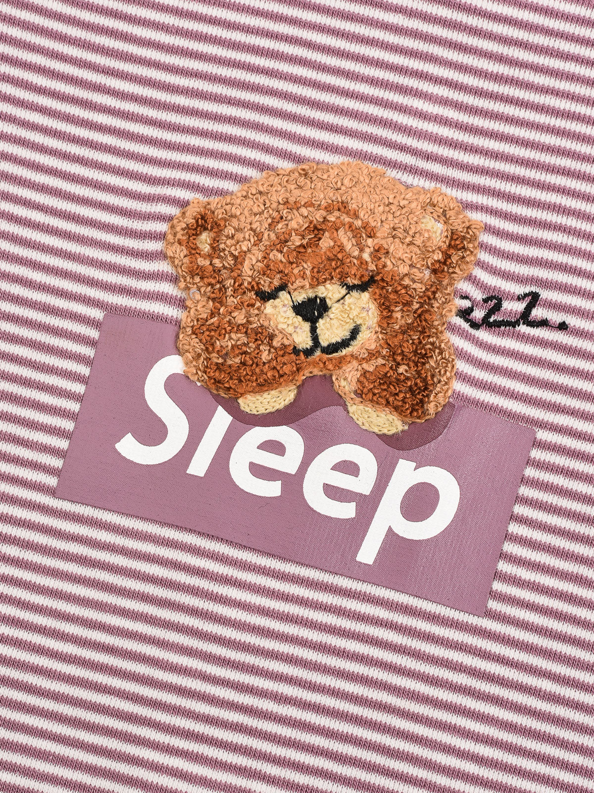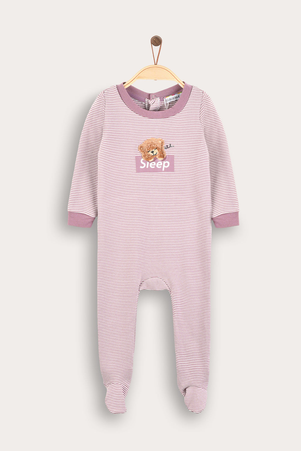 פיג'מת בייביגרו פסים, בדגם יוניסקס המתאים לבנים ולבנות כאחד. מוטיב דובי מתוק לשנת לילה נעימה.