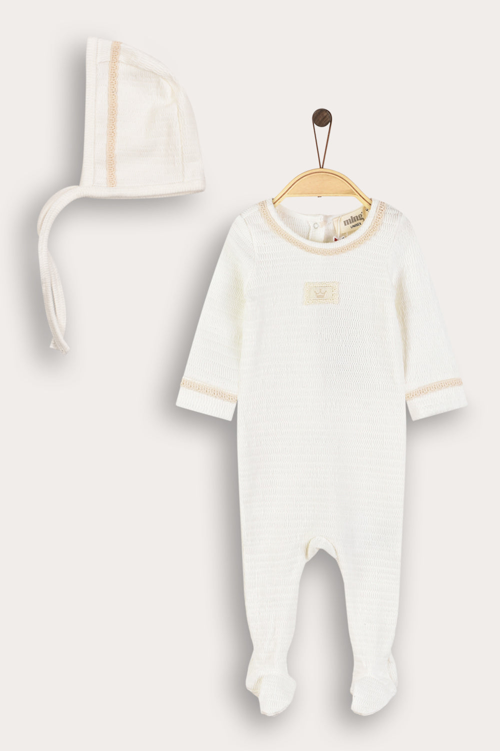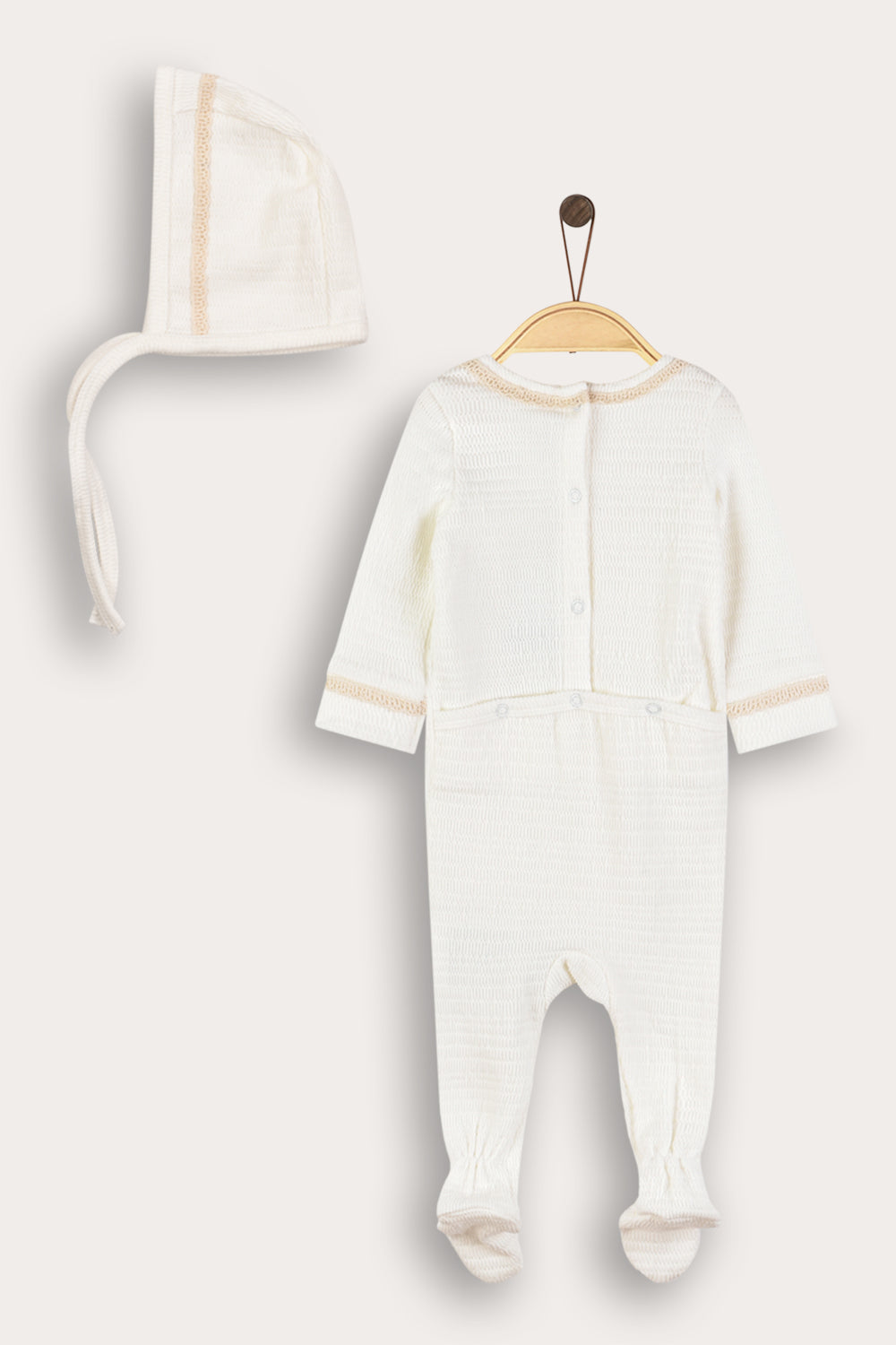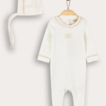 סט בייביגרו לתינוקות, בדגם יוניסקס המתאים לבנים ולבנות כאחד, מגיע עם כובע בעיצוב תואם.