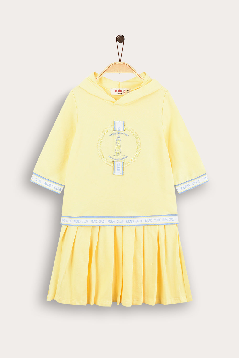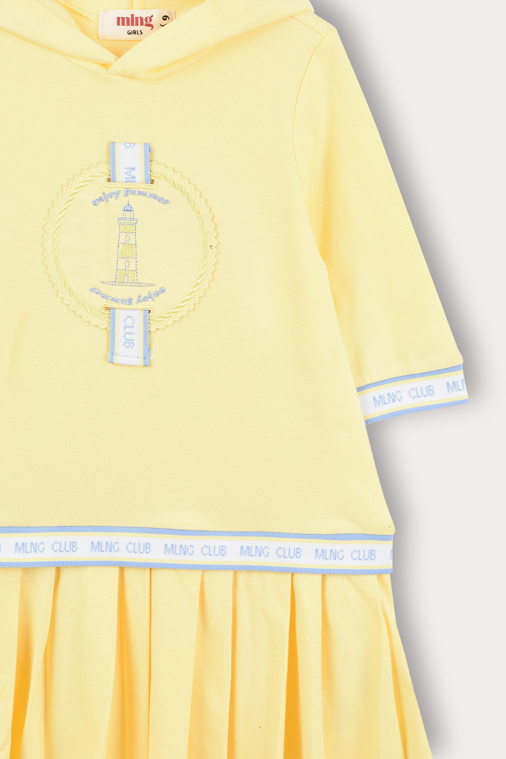 שמלת פולו קייצית לבנות, עשויה מבד קליל ונעים - לנוחות מירבית לאורך כל היום. הגזרה כוללת כובע קפוצ'ון, קפלים ליצירת נפח וסיומת סרט עם כיתוב - המשלים הופעה אופנתית וספורטיבית, אידיאלית לשימוש יום יומי, לטיולים וליציאות משפחתיות.