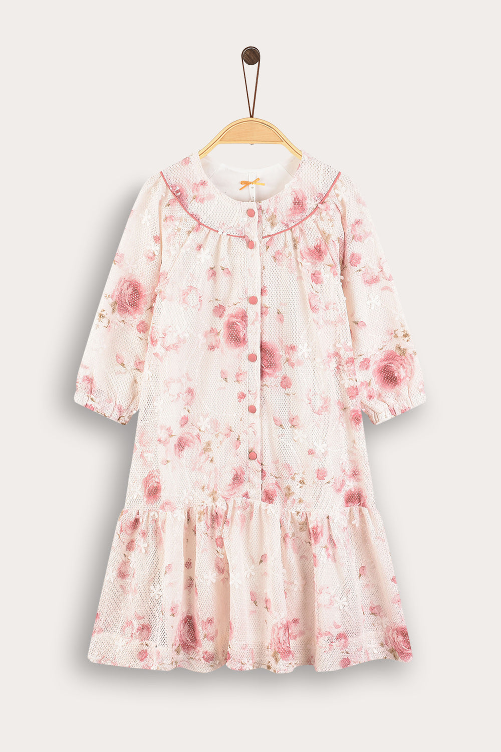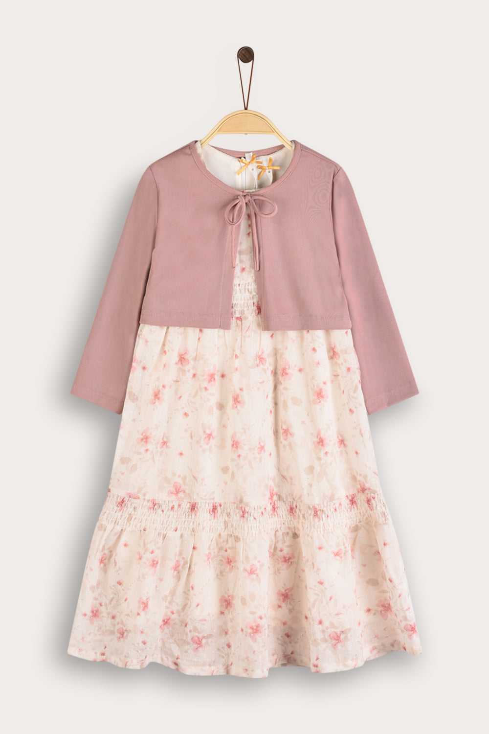 שמלה פרחונית בשילוב קרדיגן - ורוד