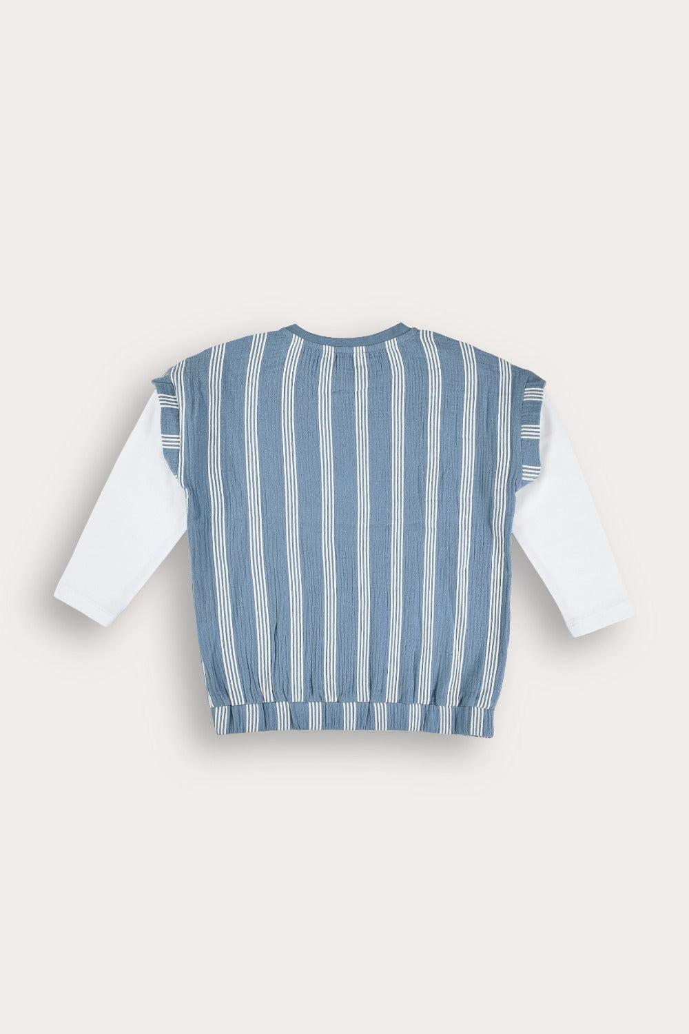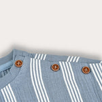 חולצת בנות בעיצוב פסים קלאסי, עשויה מבד כותנה איכותי ונושם - לנוחות מירבית לאורך כל היום. הגזרה כוללת מראה של שכבות עם וסט קדמי ושרוולים באורך 3/4, פתח צוואר עגול וכיווצים בתחתית הבגד. כפתורים בכתף ורקמה קדמית - משלימים הופעה חיננית ומסודרת.