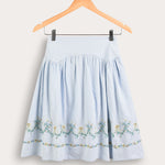 חצאית רקמה עם בטנה - תכלת
