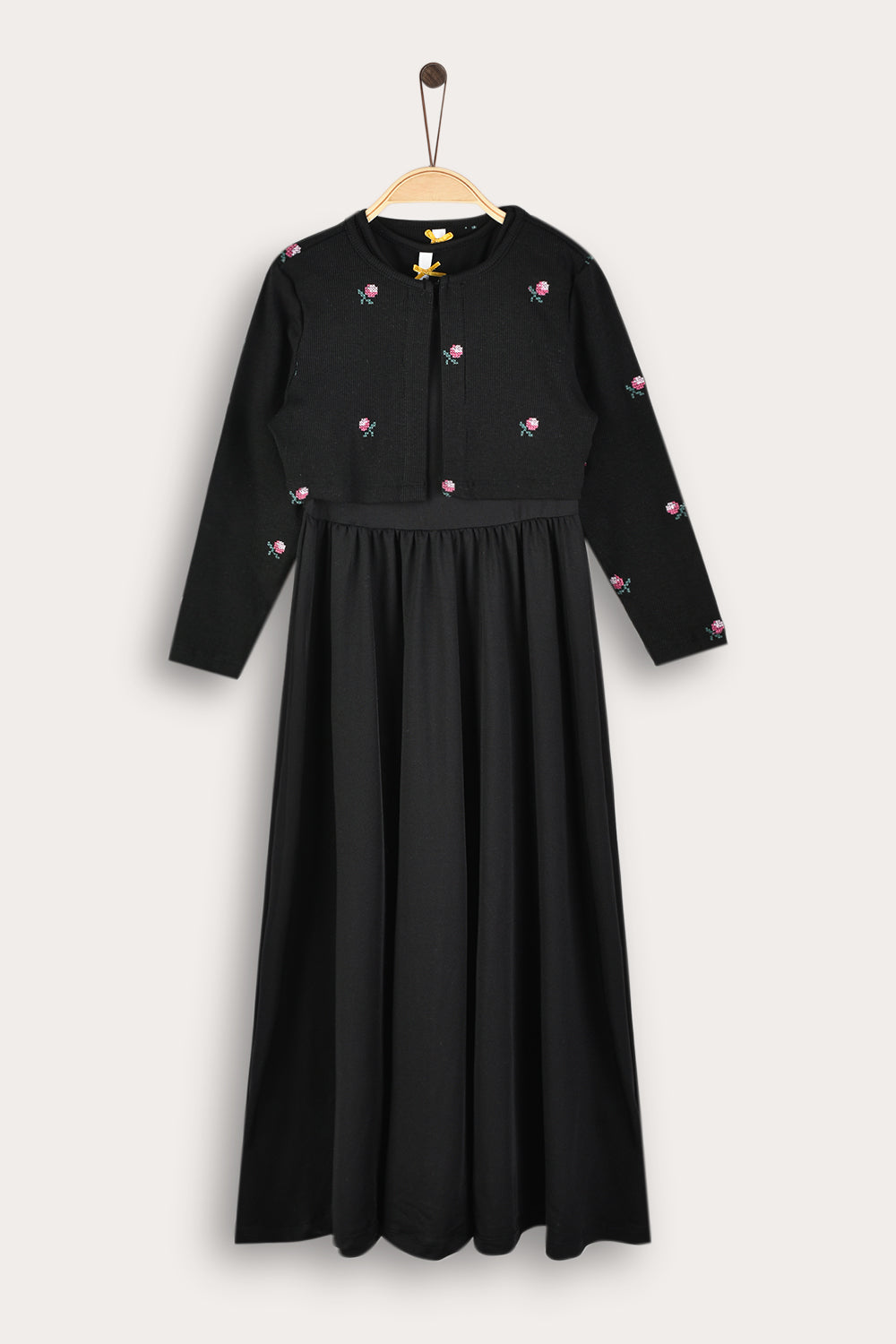 חלוק פרחוני בשילוב קרדיגן - שחור