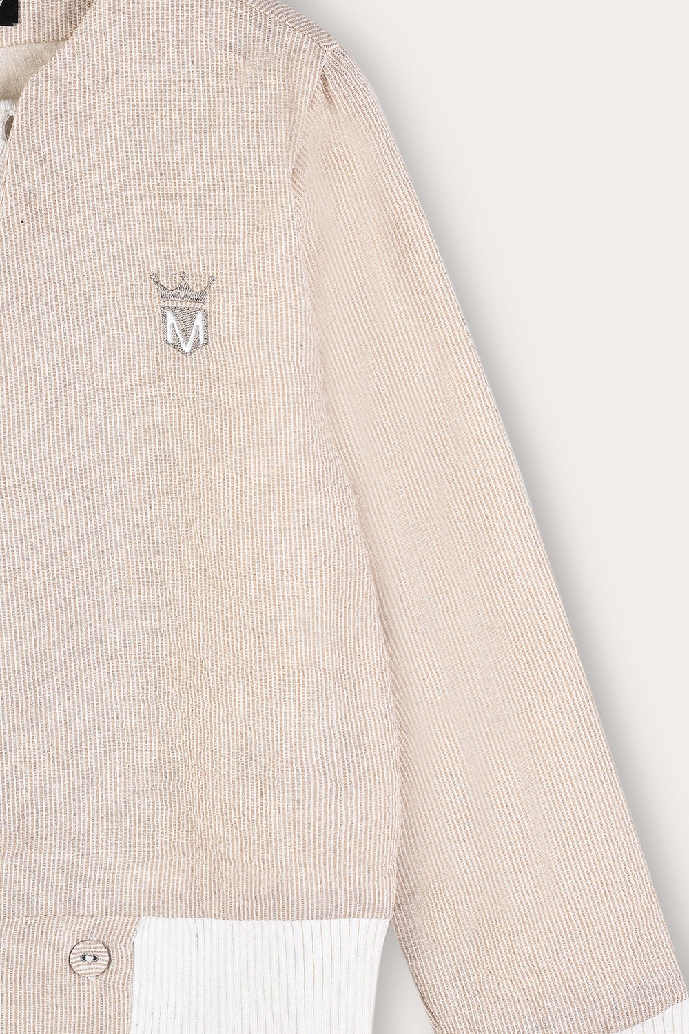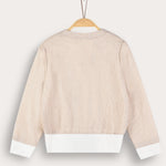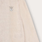 קרדיגן אלגנטי לבנים, עשוי מבד כותנה איכותי ועמיד - לנוחות מירבית לאורך היום. העיצוב כולל גזרת מעטפת נוחה, שרוולים ארוכים, סיומת ריב וסגירת כפתורית בתחתית הבגד. דוגמת פסים עדינה משתלבת עם סמל רקמה בצד, להשלמת מראה קלאסי לשבת ולחג.