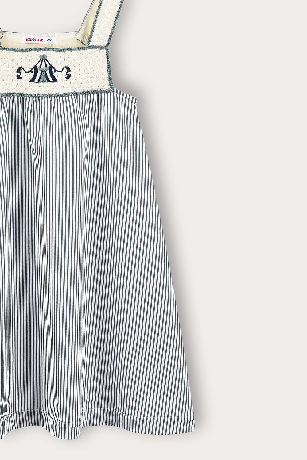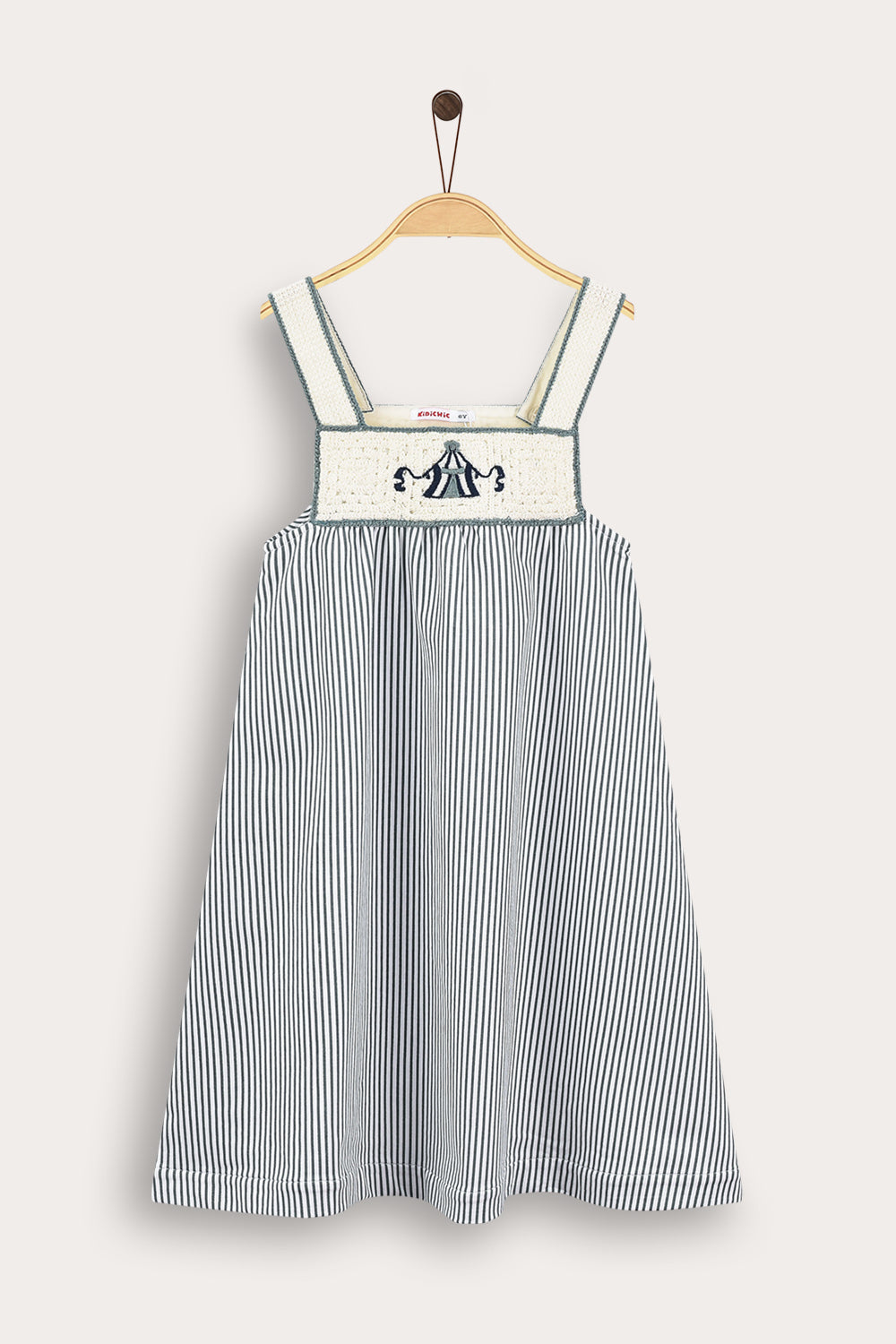 סרפן פסים אופנתי לבנות, עשוי מבד תערובת כותנה נעים וקליל - לנוחות מירבית לאורך כל היום. הגזרה כוללת כתפיות דקות וכיווצים ליצירת נפח וחופש תנועה מקסימלי. מעוצב עם סריג קרושה ייחודי וסמל קדמי במוטיב של קרקס - המשלימים הופעה נאה וחיננית, אידיאלית למפגשים חברתיים וליציאות משפחתיות.