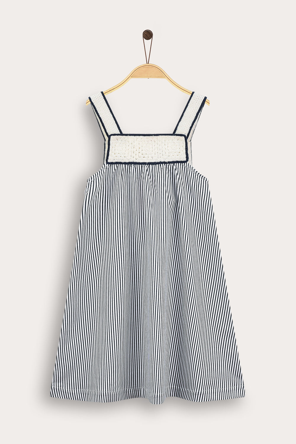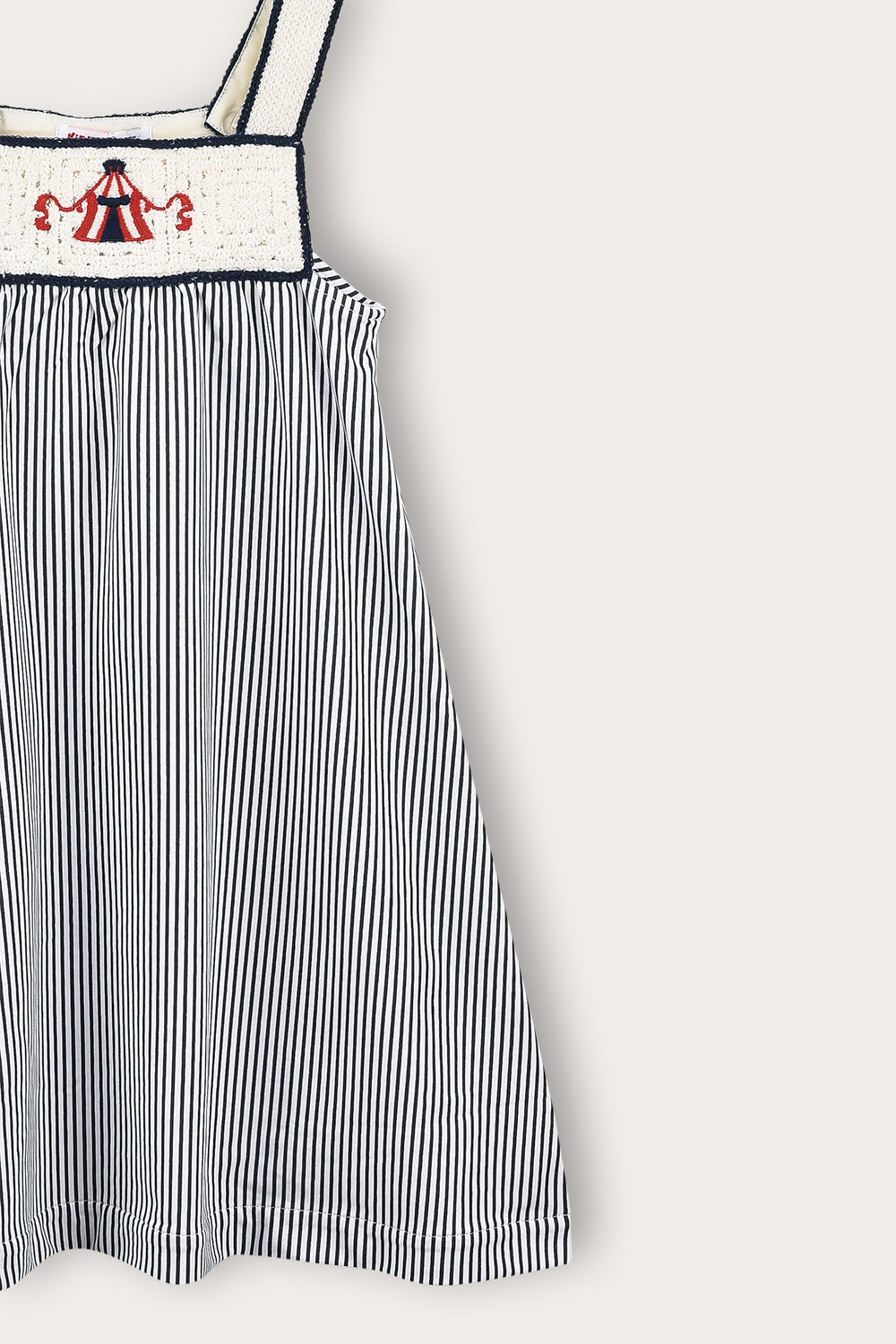 סרפן פסים אופנתי לבנות, עשוי מבד תערובת כותנה נעים וקליל - לנוחות מירבית לאורך כל היום. הגזרה כוללת כתפיות דקות וכיווצים ליצירת נפח וחופש תנועה מקסימלי. מעוצב עם סריג קרושה ייחודי וסמל קדמי במוטיב של קרקס - המשלימים הופעה נאה וחיננית, אידיאלית למפגשים חברתיים וליציאות משפחתיות.