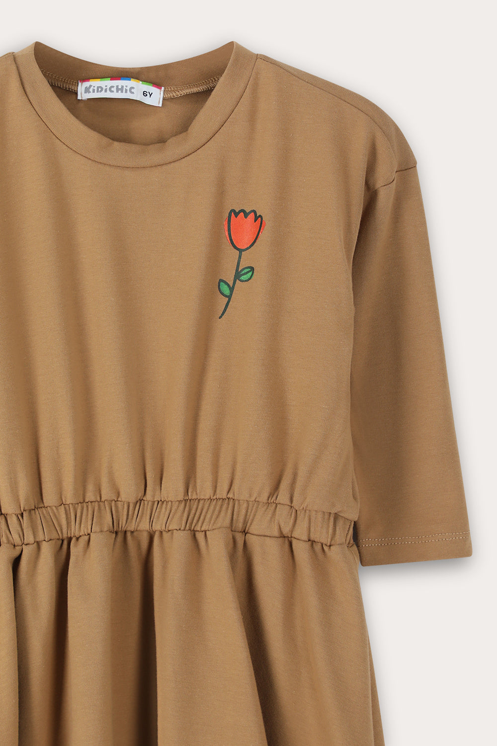 שמלה אופנתית לבנות, בעיצוב נוח וקליל - המתאים לשימוש יום יומי. הגזרה כוללת שרוולים באורך 3/4, פתח צוואר עגול וחגורת מותניים אלסטית - ליצירת נפח וחופש תנועה מקסימלי. הדפס קדמי ואחורי במוטיב של פרחים - משלימים הופעה נאה וחיננית, אידיאלית למפגשים חברתיים וליציאות משפחתיות.