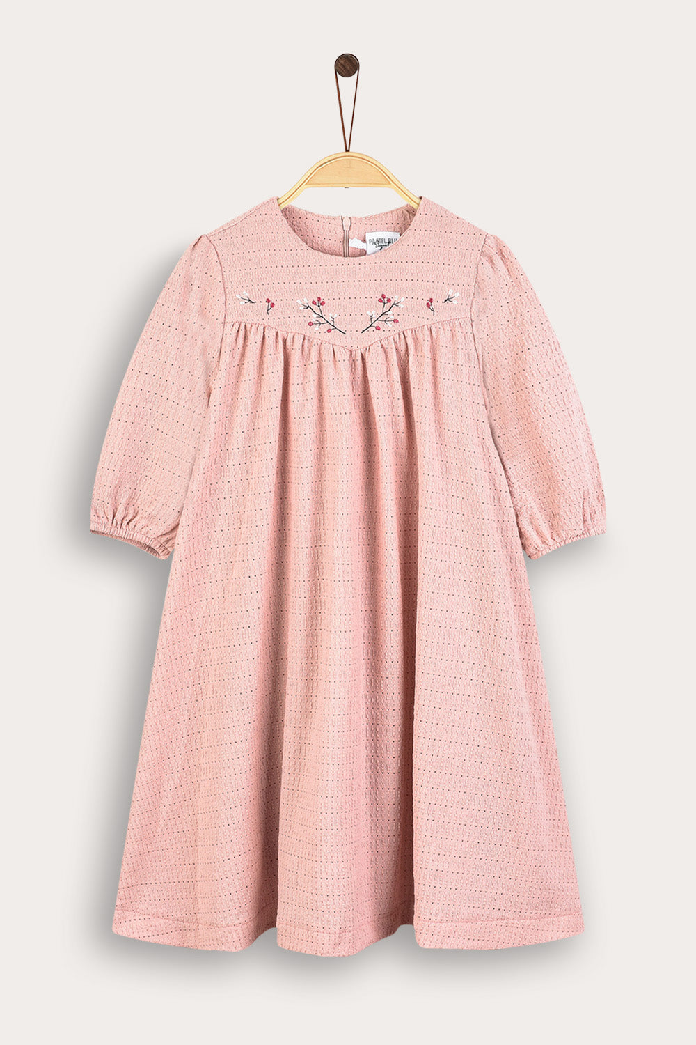 שמלת כיווצים עם רקמה - ורוד