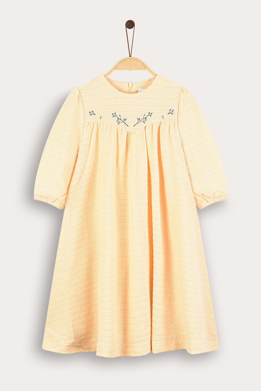 שמלת כיווצים עם רקמה - צהוב