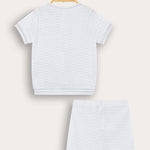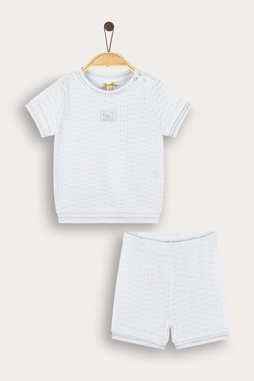 סט שני חלקים לתינוקות, בעיצוב יוניסקס המתאים לבנים ולבנות כאחד. עשוי מבד סריג נעים וגמיש - לנוחות מירבית לאורך היום. החלק העליון חולצה עם שרוולים קצרים, פתח צוואר עגול והדפס קדמי מתוק. החלק התחתון מכנסיים קצרים בעיצוב תואם המשלים הופעה נאה ומסודרת, אידיאלית לשבתות, חגים ואירועים משפחתיים.