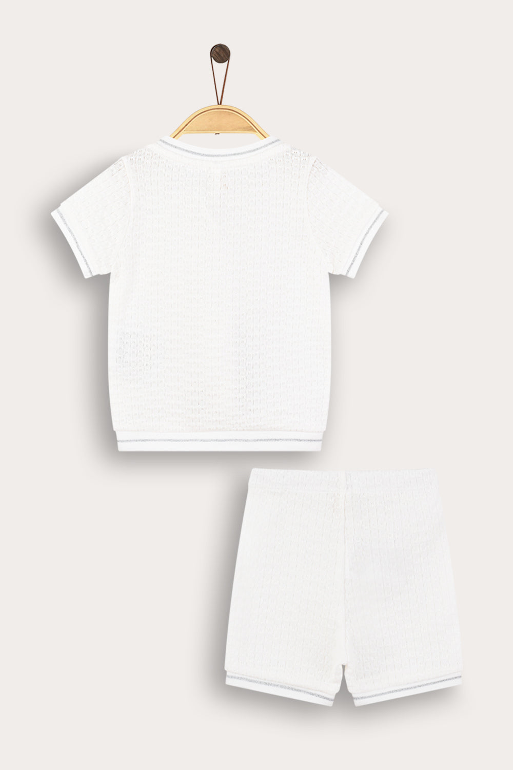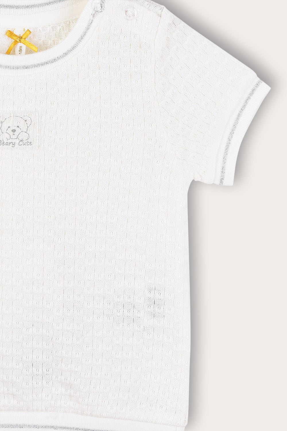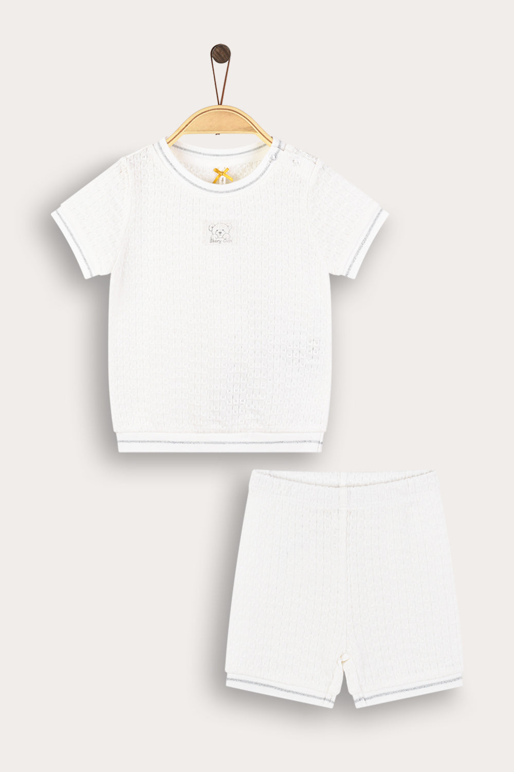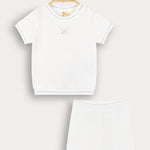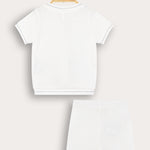 סט שני חלקים לתינוקות, בעיצוב יוניסקס המתאים לבנים ולבנות כאחד. עשוי מבד סריג נעים וגמיש - לנוחות מירבית לאורך היום. החלק העליון חולצה עם שרוולים קצרים, פתח צוואר עגול והדפס קדמי מתוק. החלק התחתון מכנסיים קצרים בעיצוב תואם המשלים הופעה נאה ומסודרת, אידיאלית לשבתות, חגים ואירועים משפחתיים.