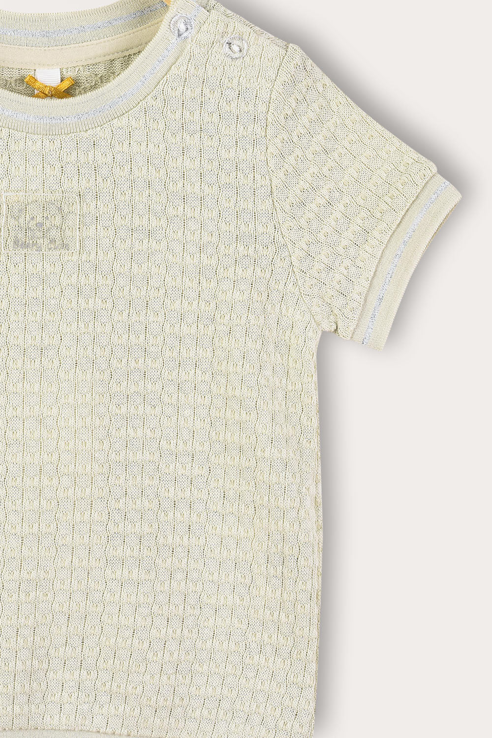 סט שני חלקים לתינוקות, בעיצוב יוניסקס המתאים לבנים ולבנות כאחד. עשוי מבד סריג נעים וגמיש - לנוחות מירבית לאורך היום. החלק העליון חולצה עם שרוולים קצרים, פתח צוואר עגול והדפס קדמי מתוק. החלק התחתון מכנסיים קצרים בעיצוב תואם המשלים הופעה נאה ומסודרת, אידיאלית לשבתות, חגים ואירועים משפחתיים.