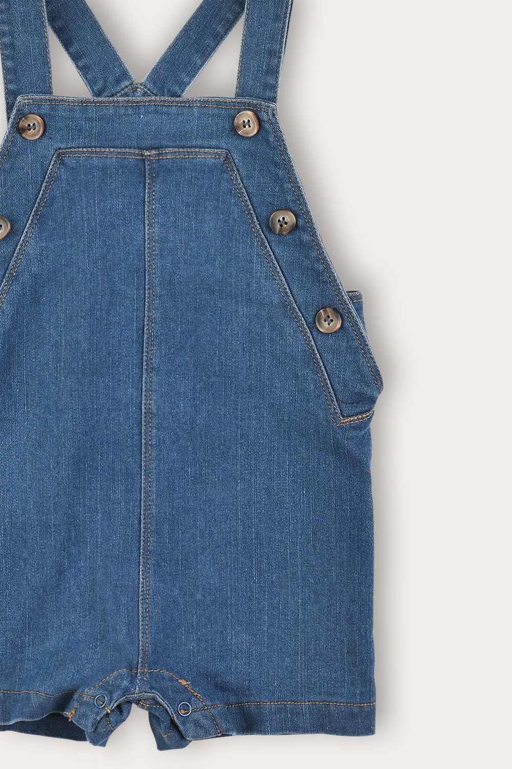 אוברול מתוק לתינוק, עשוי מבד ג'ינס איכותי ועמיד - המתאים לשימוש יום יומי. הגזרה כוללת כתפיות דקות עם איקס בגב, מכנסיים קצרים וסגירת כפתורים צדדית. מתאים לשילוב עם טי שירטים או בגדי גוף, אידיאלי לטיולים עם הקטנטנים.