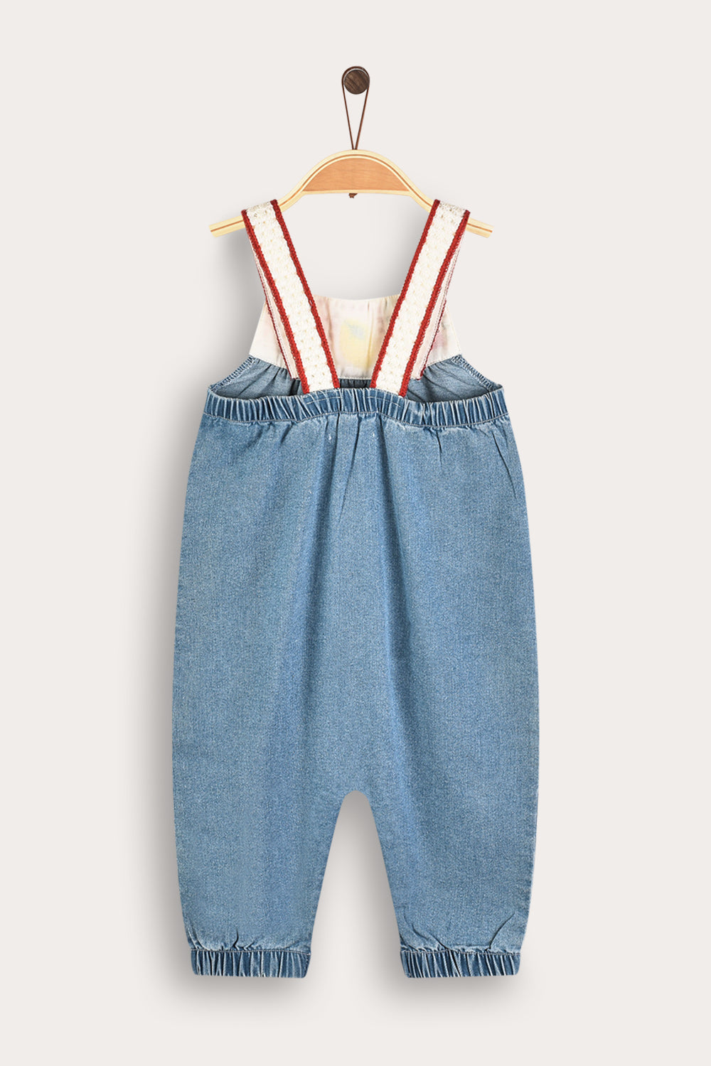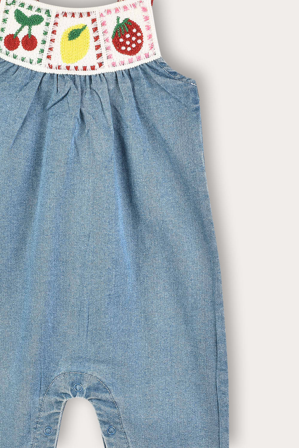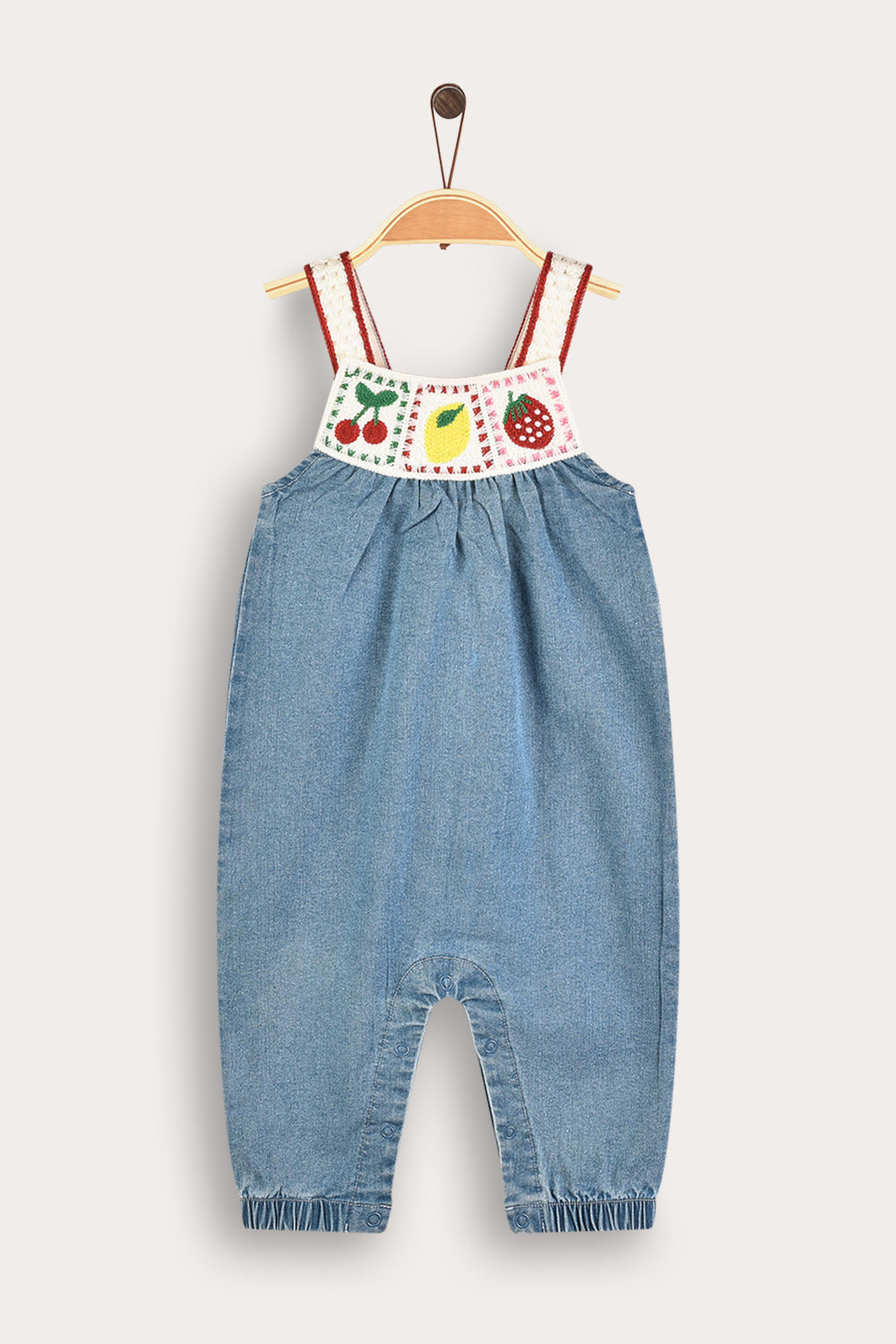 אוברול אופנתי לתינוקת, עם כתפיות בשילוב סריג מתוק במוטיב קייצי.