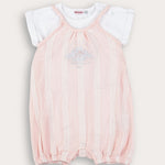 אוברול פסים עם רקמה - ורוד