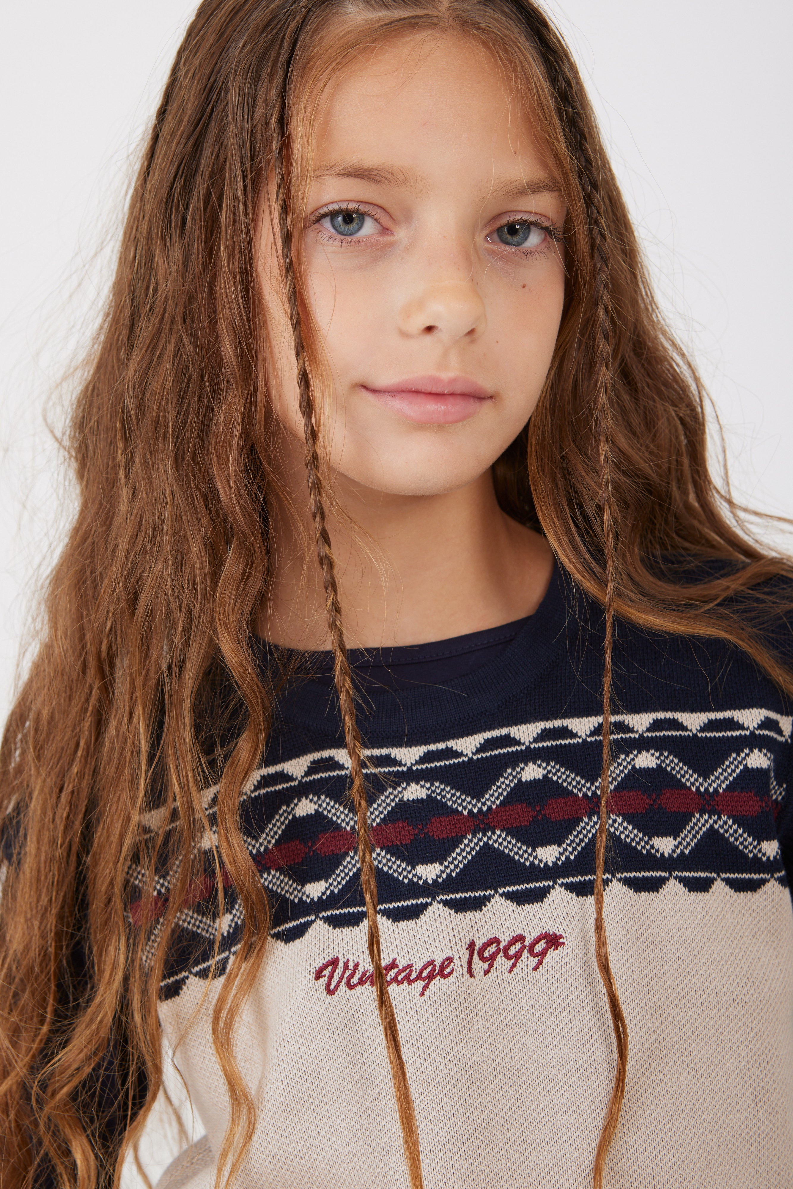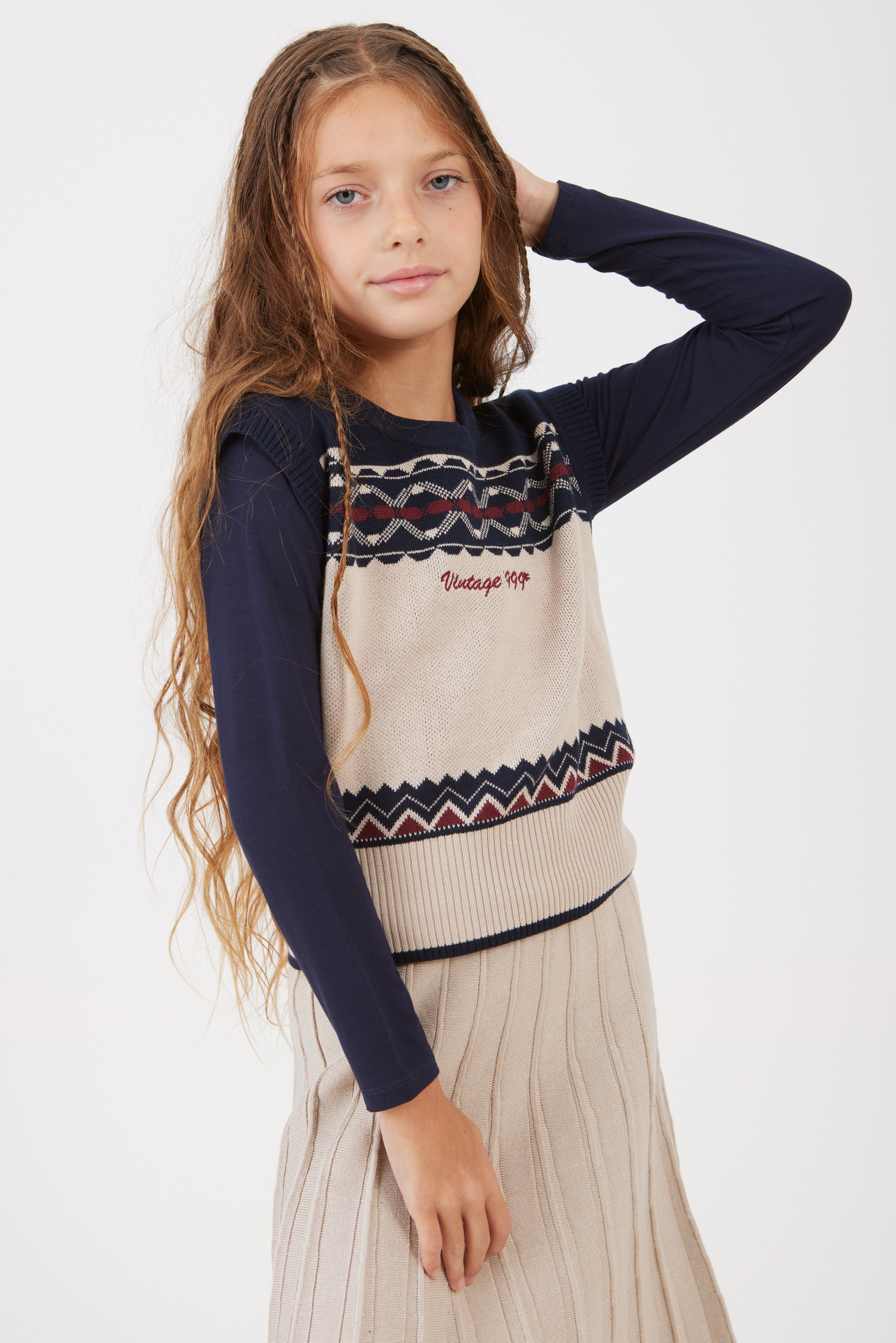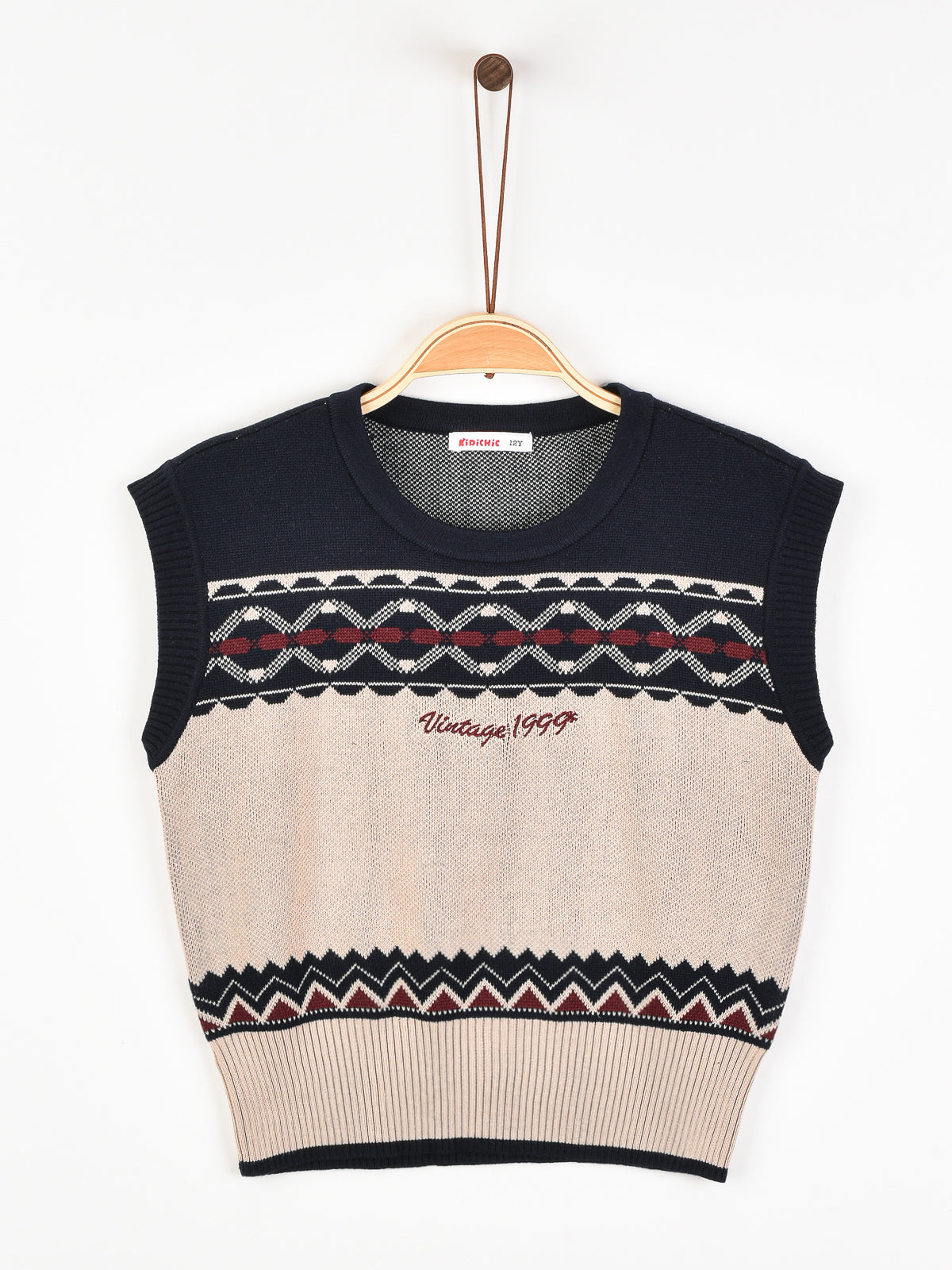 אפודת סריג בדוגמה גיאומטרית - אבן
